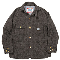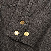 ボタンもやはりビンテージの黒塗りボタンを基にボタン屋さんがオリジナルで作った物。真鍮に黒塗り塗装。刻まれた柄の細かさ、元型を手で彫るからこそビンテージそっくりのギザギザが出ています。