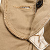 後ろポケットを突き抜け、深く取ったダーツ、これはサンフランシスコに行った時に見た某社の古いチノパン。ヒップ周りがゆったりとして、実にラフな雰囲気がありはきやすそうでした。これを基に、仮縫いを繰り返してダーツ寸法を決めています。私が今まで作っていたトラウザーが、比較的ヒップ寸法が小さめだったので、今回は、少しだけ大きめにしています。