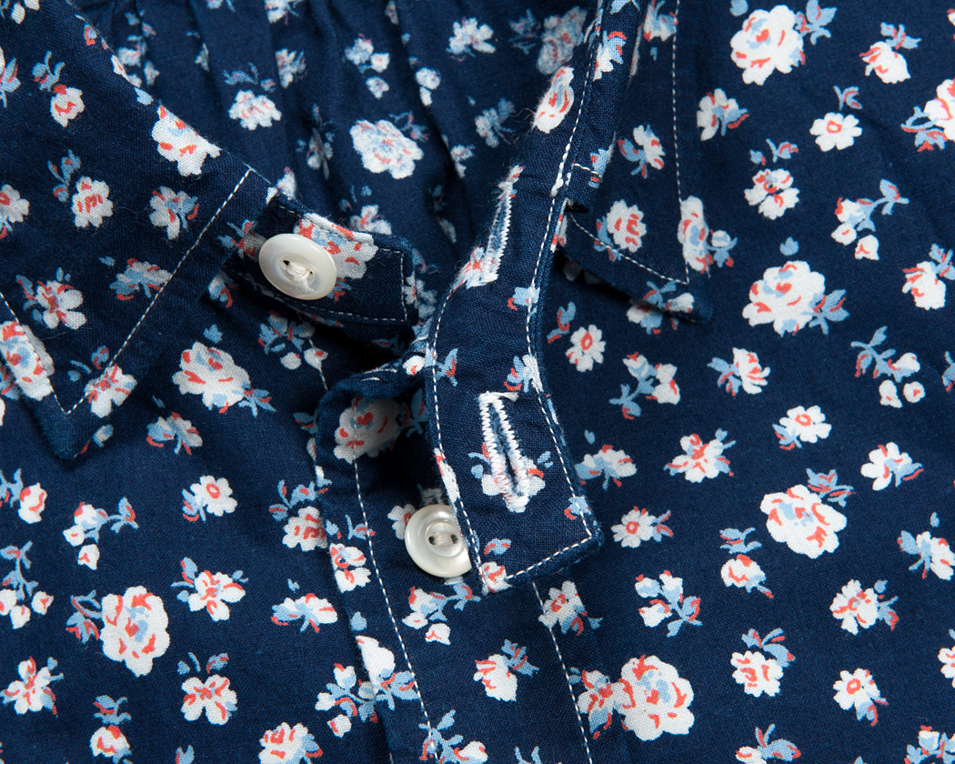 ただ、作るのではなく、ベーシックなホワイトのシーチングのほか、大好きなブルーのストライプ生地、そしてインディゴ+抜染+プリント(着抜)の花柄で作成しました。