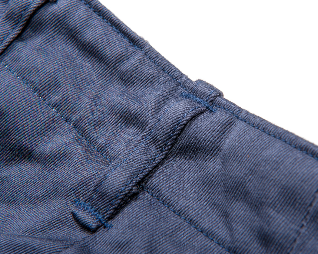 | 裾はシングルステッチ始末。脇・内またともロック割です。 |