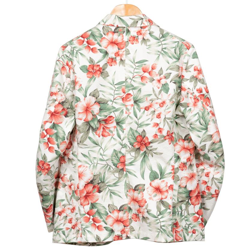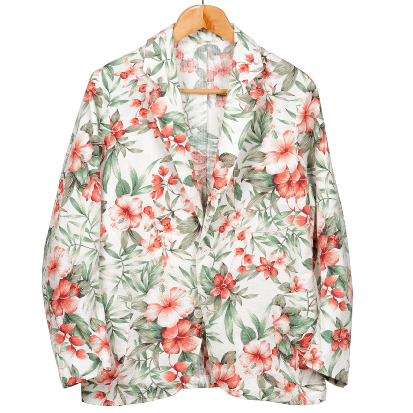素材は綿100%のシアサッカー。これにフルカラーインクジェットプリントで花柄を描いています。