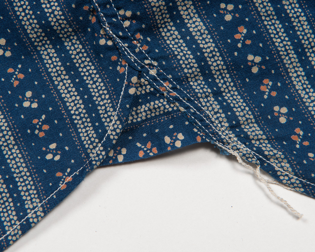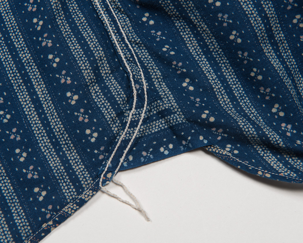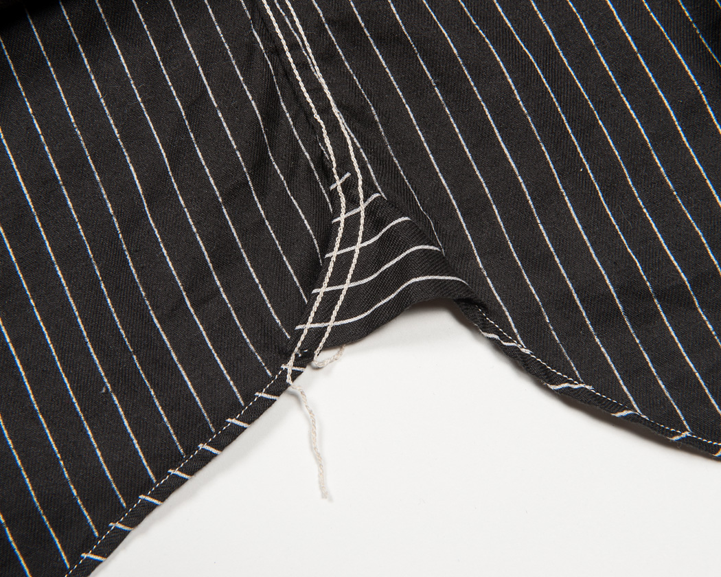 脇の巻き縫い終わり部分。マチが入っています。
