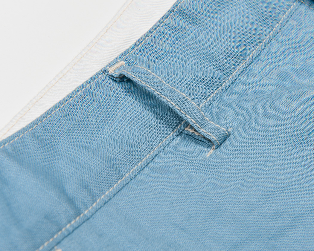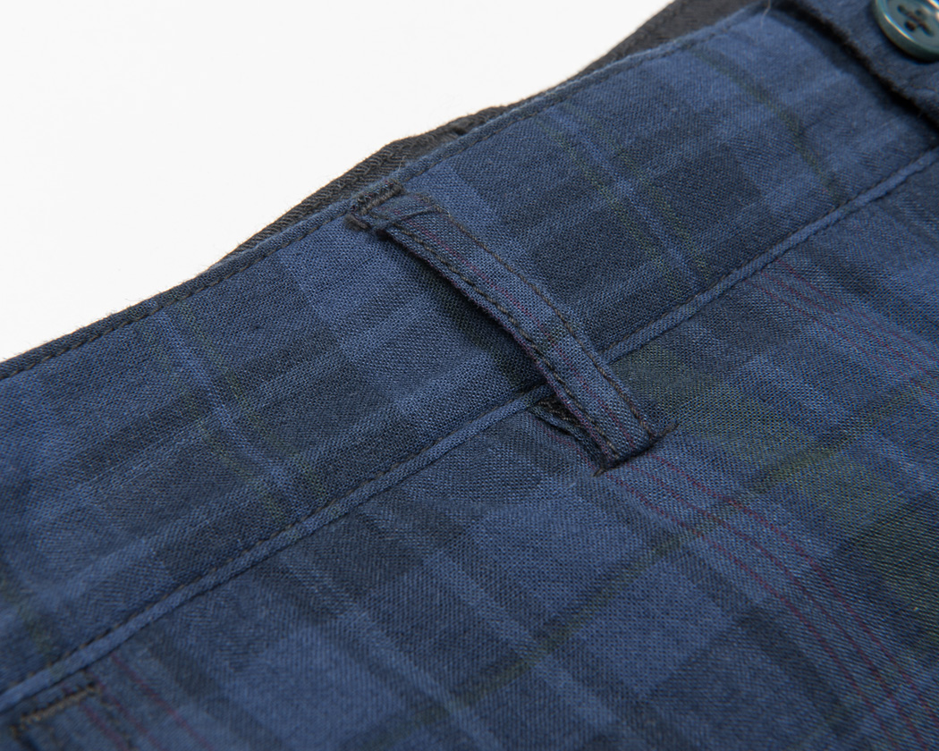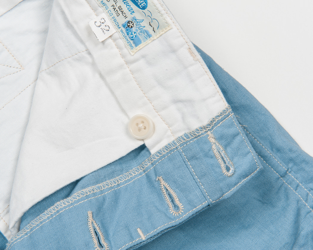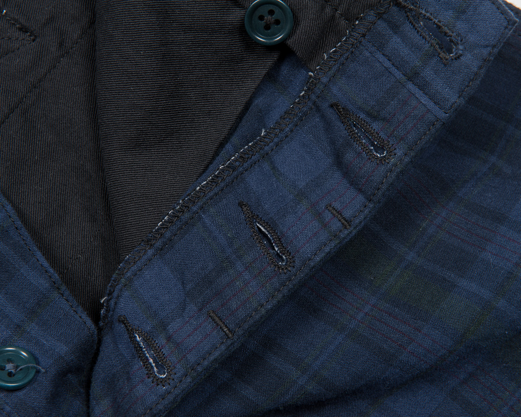 腰裏はスレキ始末の平ミシン。内がけボタンも手付しています。