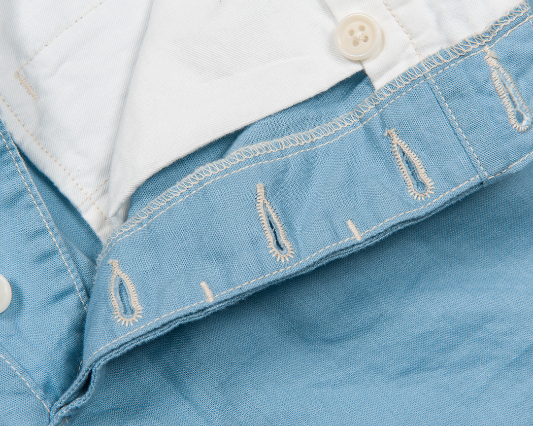 これも単に趣味の仕様。自分で言うのも難ですが、WORKERSのパンツにせよシャツにせよ、並べれば仕様のデパートができます。物に似つかわしい仕様にしたい、その思いが毎回仕様を変えさせてしまうのです。