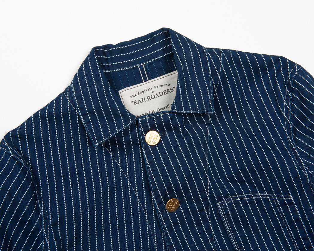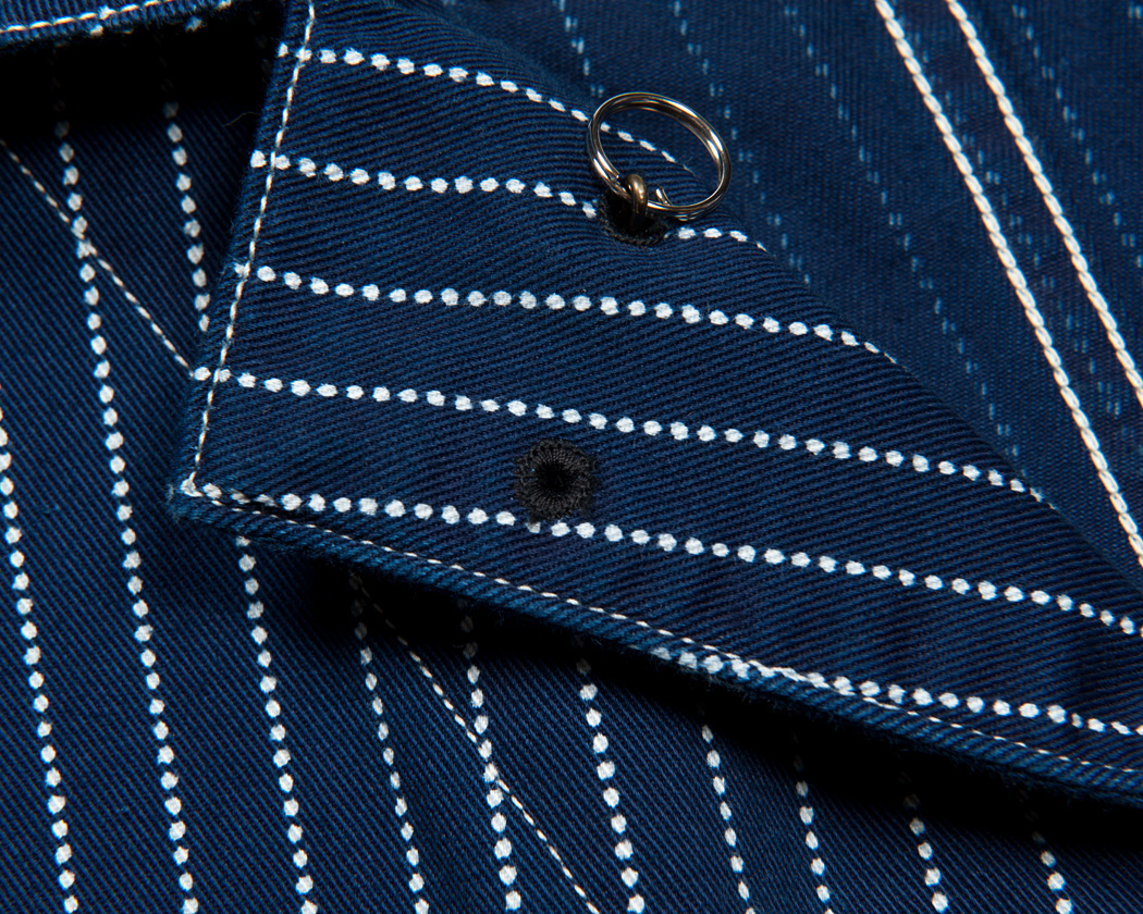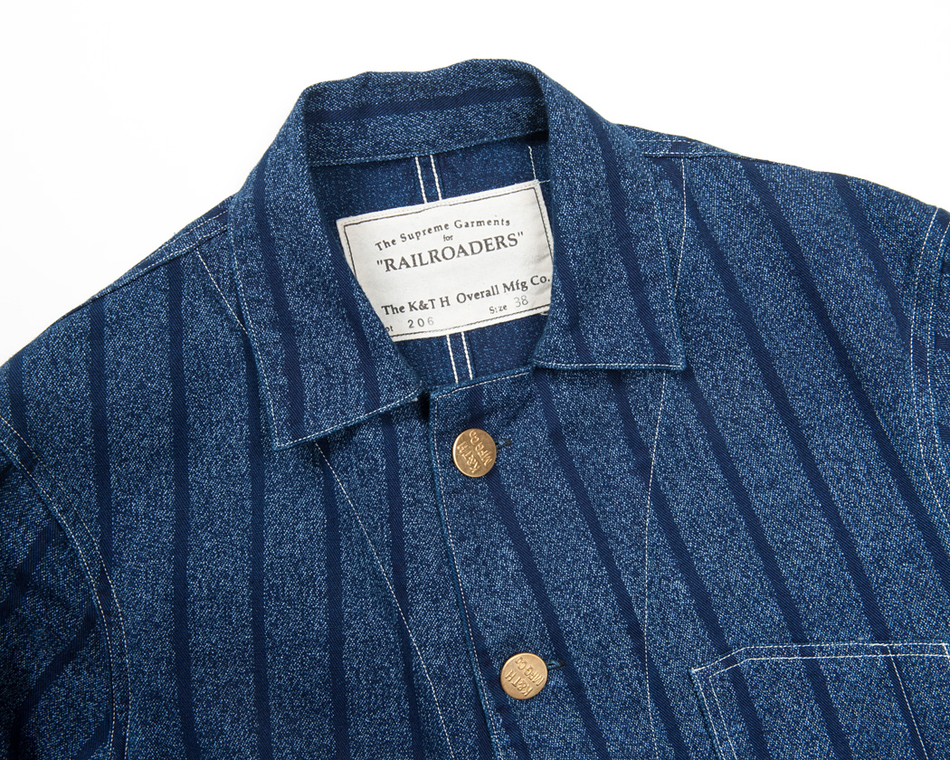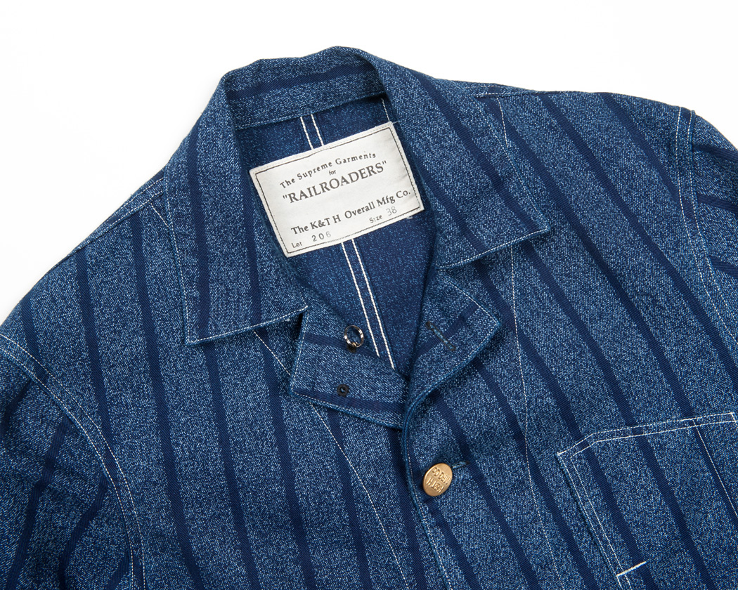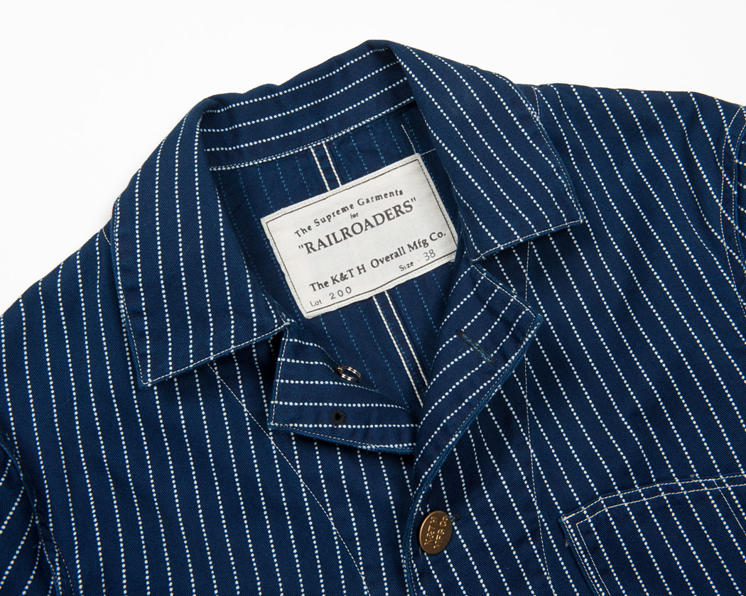 第一ボタンのボタンの根元、菊穴は2つあり開き具合を調節できるようになっています。アドでは見えづらいのですが1910年代のHEADLIGHT実物のレイルロードジャケットがこの仕様であったためです。