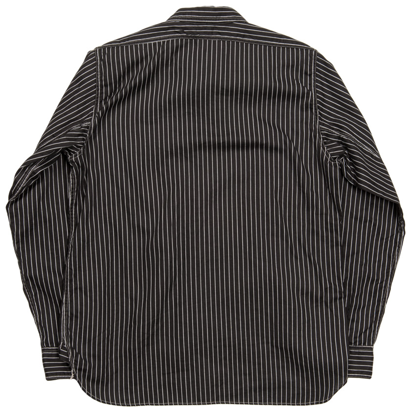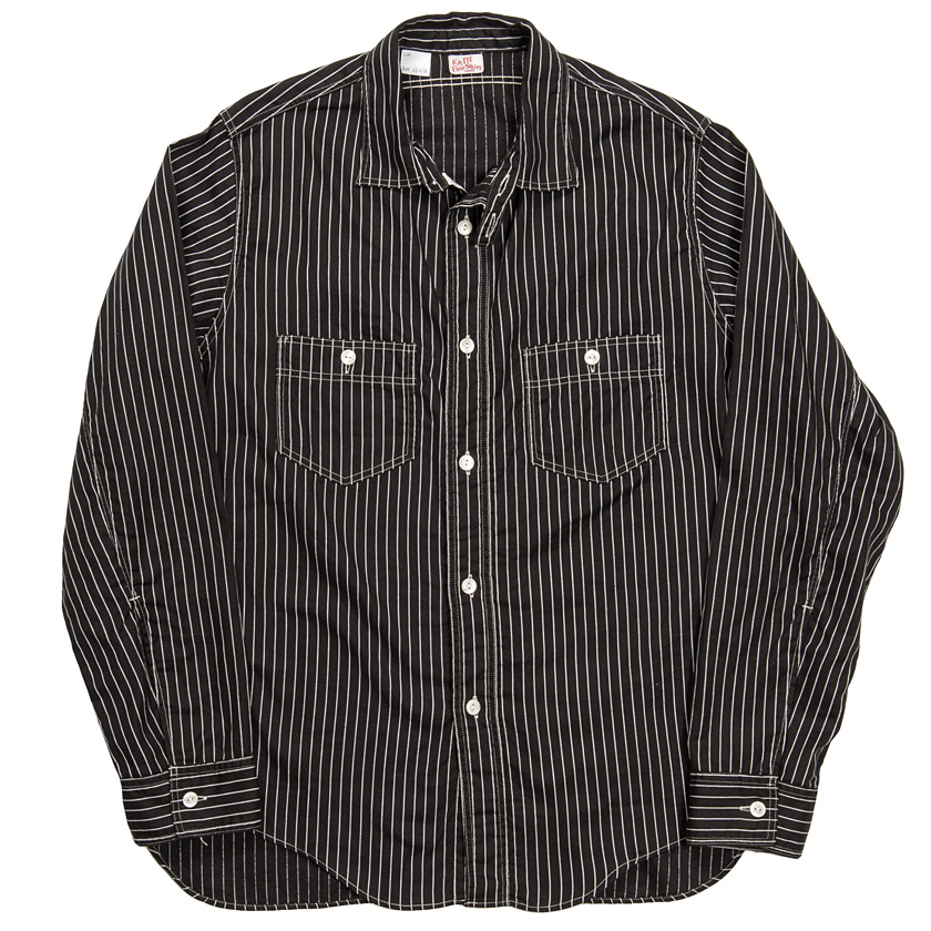 もともと、ビンテージワークウェアではお馴染みの黒ベース生地に抜染でストライプを描いた生地。