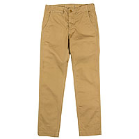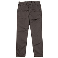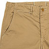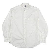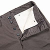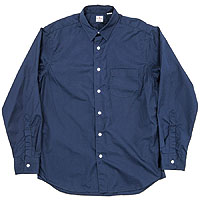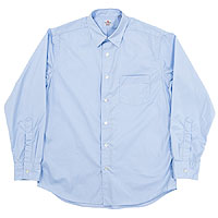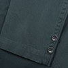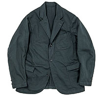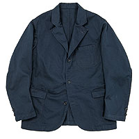 パターンの特徴は袖。サイドから見ると前に振り、さらに前から見ると前中心に向かってもカーブしています。これはハンガーで吊った状態でも同じ。吊った状態で見て美しく、着た時には人間の立体的な腕の動きに追従して動きやすく、静止した状態では立ち姿が美しくなるように作図しています。今年はワンウォッシュ済の製品を納品。手に入れた時から適度に馴染んだ風合いです。 |