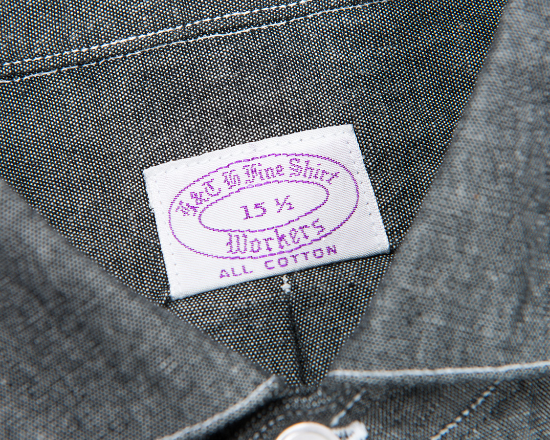 襟ふせは台襟表からの落とし。 本来は、意味云々以上に工場の癖というか、「いつもこれでやってる」といった世界です。 それをわざわざ、目標とするアイテムごとに仕様を分けて作っています。 「そのものらしさ」を追及するためです。 いうなれば、サントリーが山崎蒸留所で、さまざまな樽を使い分けることで熟成後の風合いを変えるのと似たような話です。 本来は「この国はこういう作り方、樽を使うからこんな酒になる」をシュミレーションして作りだすのです。話を聞いてまさにWORKERSも同じだなと。 ある意味、本来作っていた本人たちもともすれば大事な部分と気づかないような部分。これを勉強して、理解して再現しようとしています。