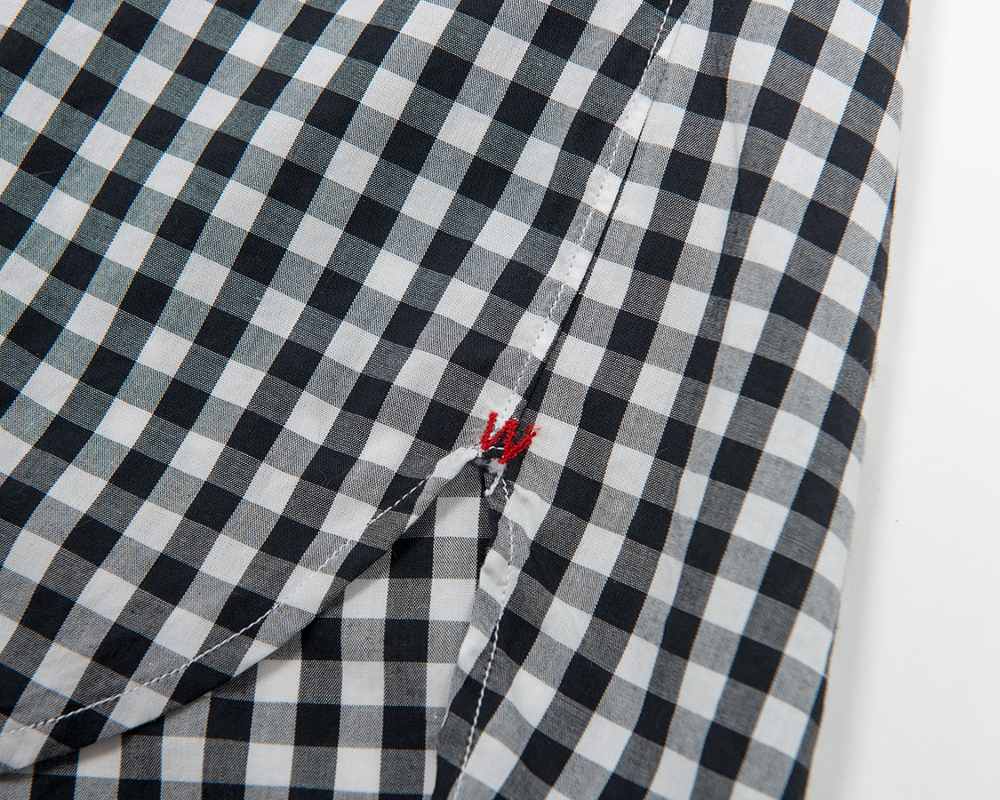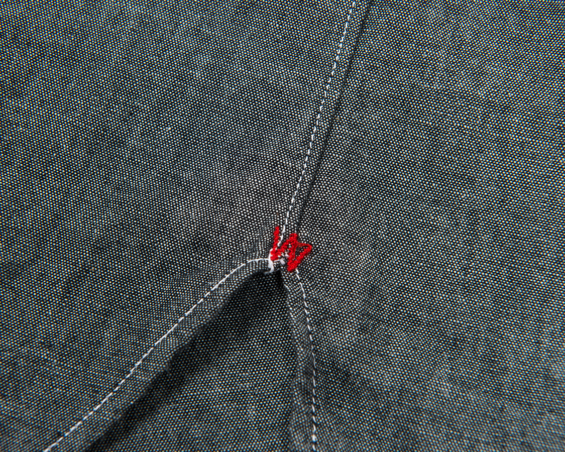 表から見ると一本ステッチ、裏から見ると二本ステッチが入っている細めの折伏せ縫い。