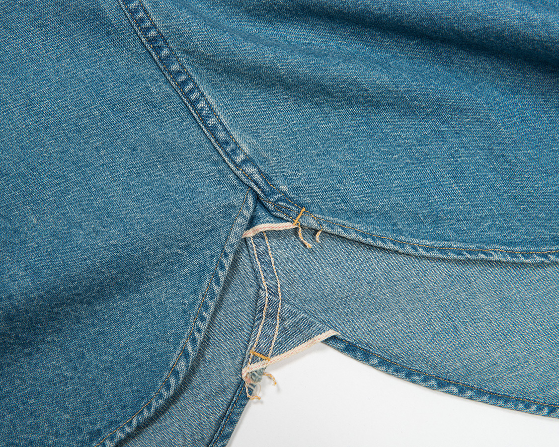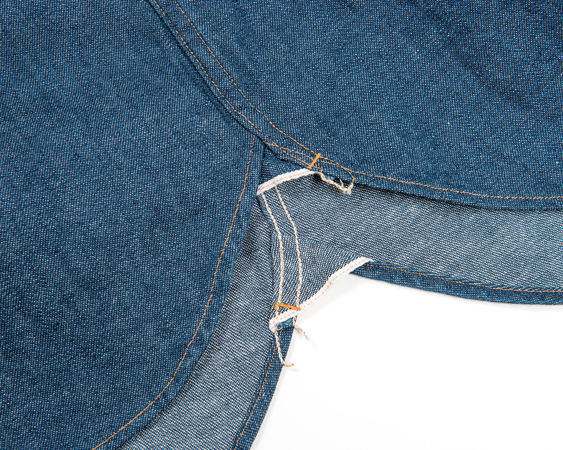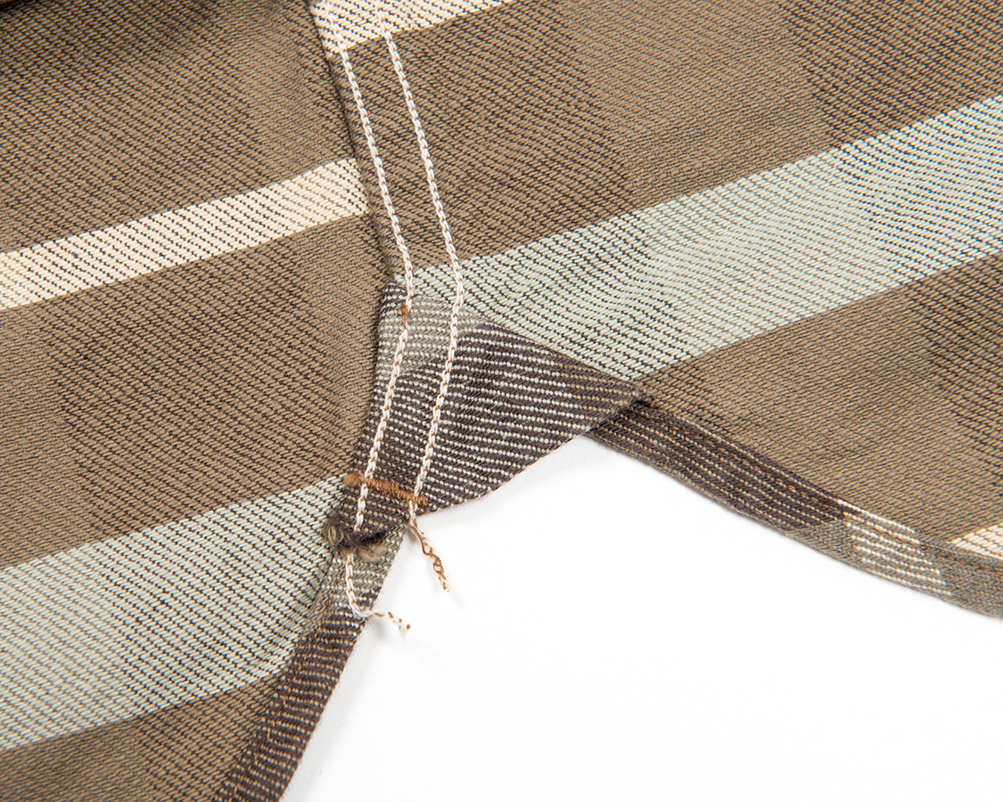 脇はマチ使い。デニムは耳を使い、フランネルは生地を二つ折りにしています。