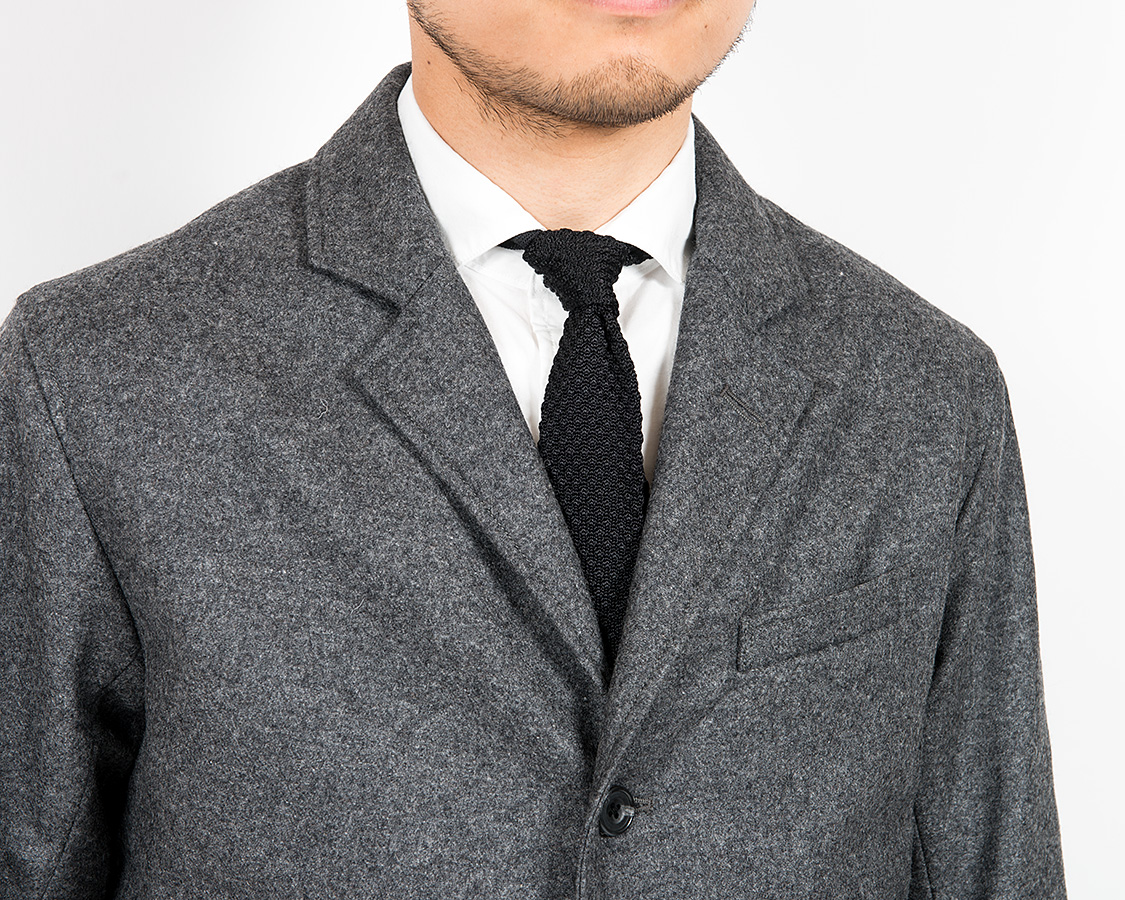 2013年よりも、少しだけラペルを広く。また、三つボタン上二つ掛けに仕様を変更しています。