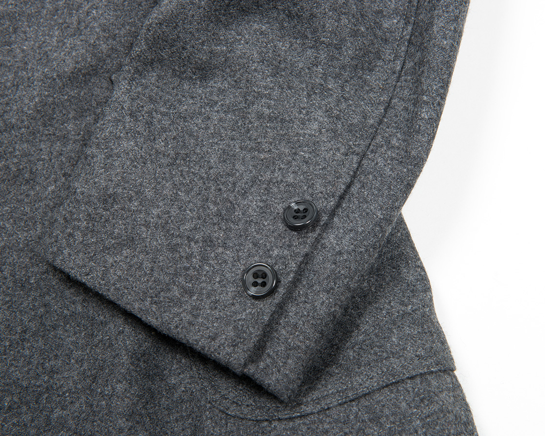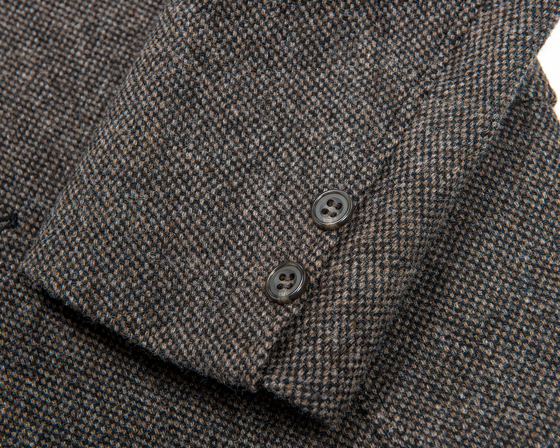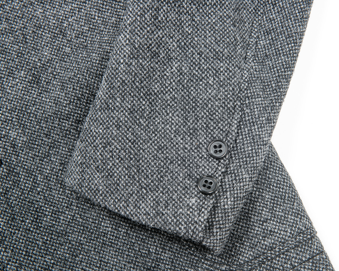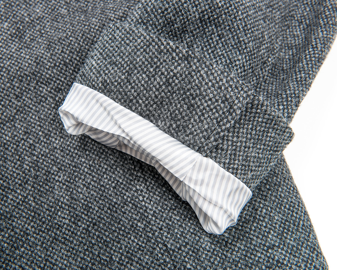 袖口は偽開き。本切羽にしないのが、既製服としての矜持です。袖丈直しを肩だけでなく、袖口でもしやすくするためです。