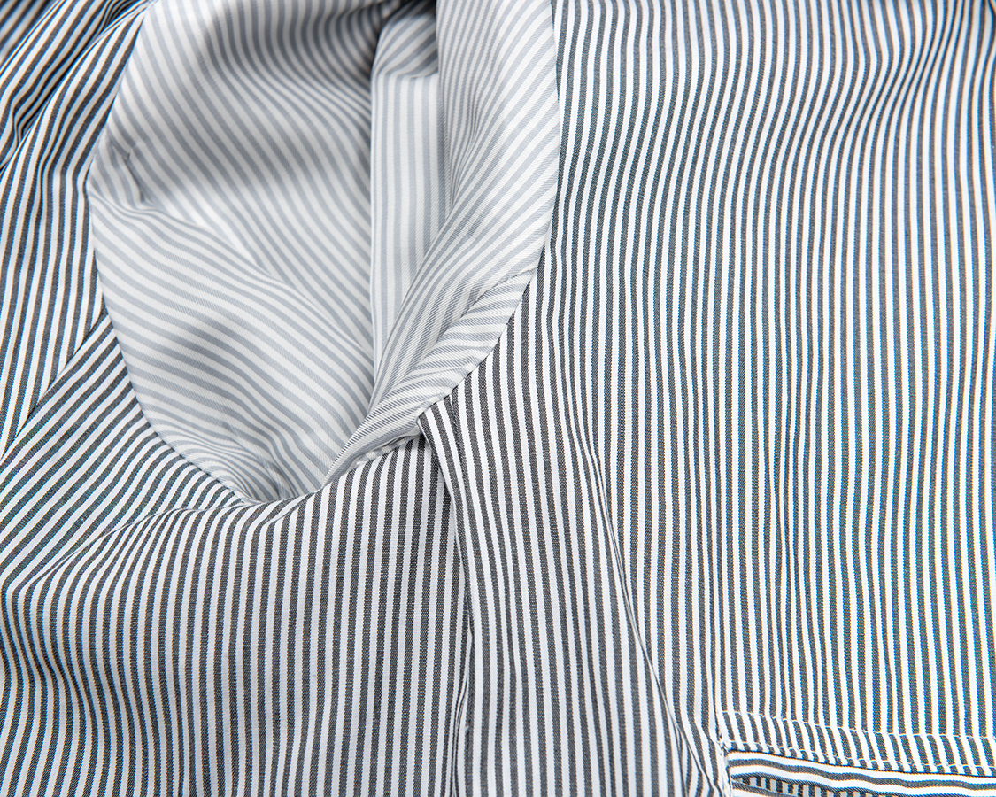 袖裏はストライプのベンベルグ。すべりの良さを重視して身頃裏と生地を変えています。