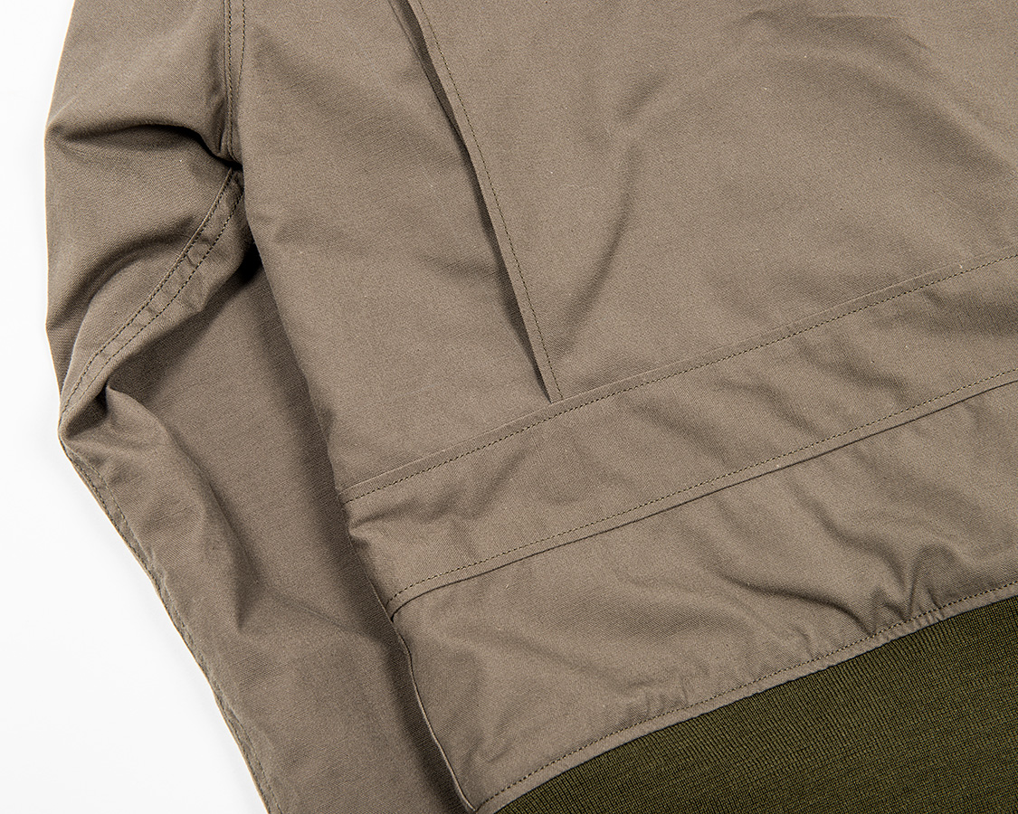 背面にはG-1やフィールドジャケットでおなじみの切り替えしとアクションプリーツ。