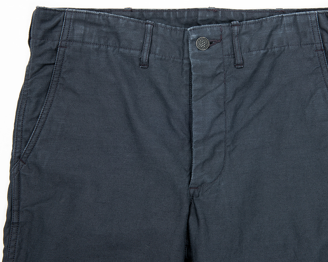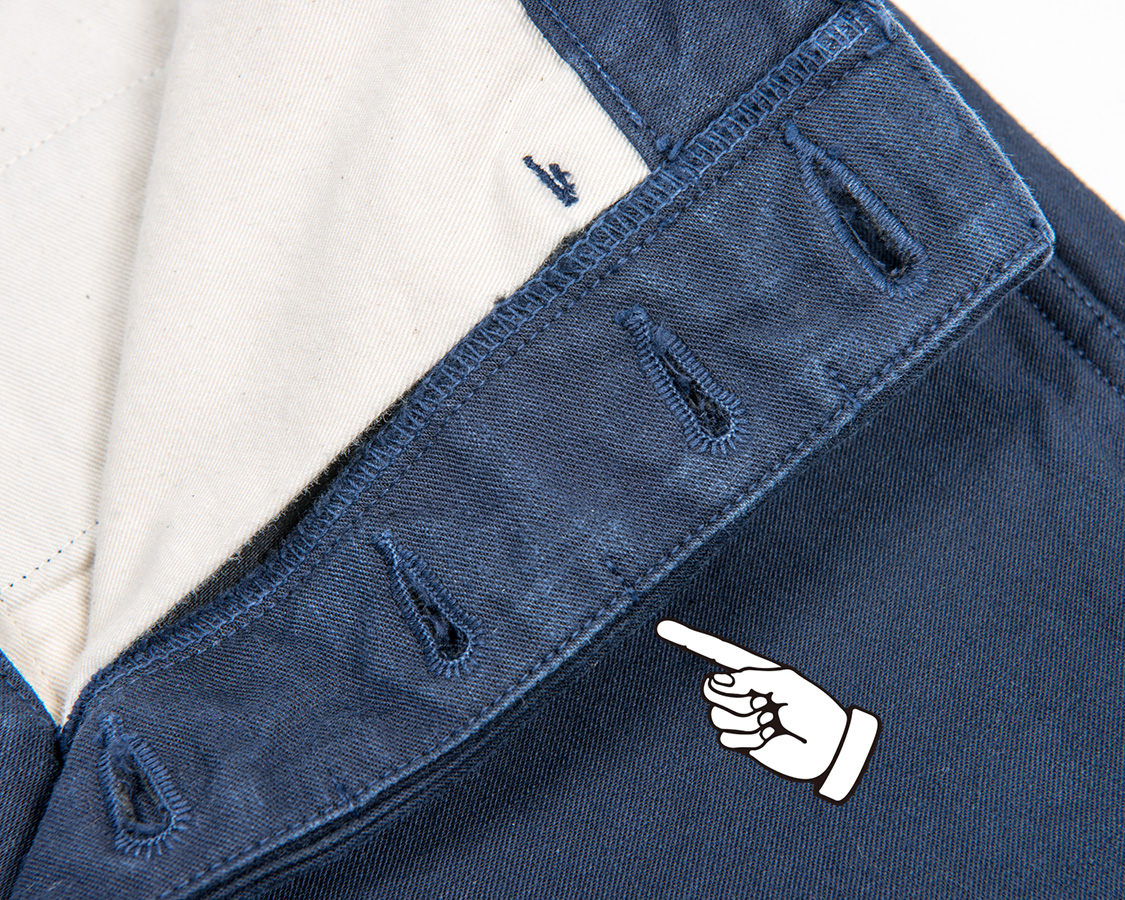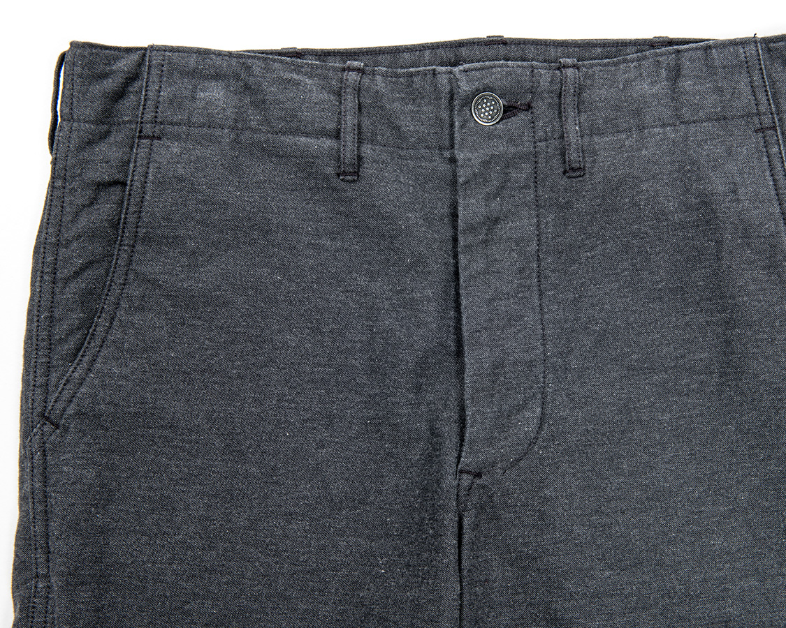 もともと「冬にはくチノパン的トラウザーズは・・・」と考えているうちに「風を防ぎ、適度な厚みのあるバックサテンはどうだろうか?」というアイデアを形にしました。