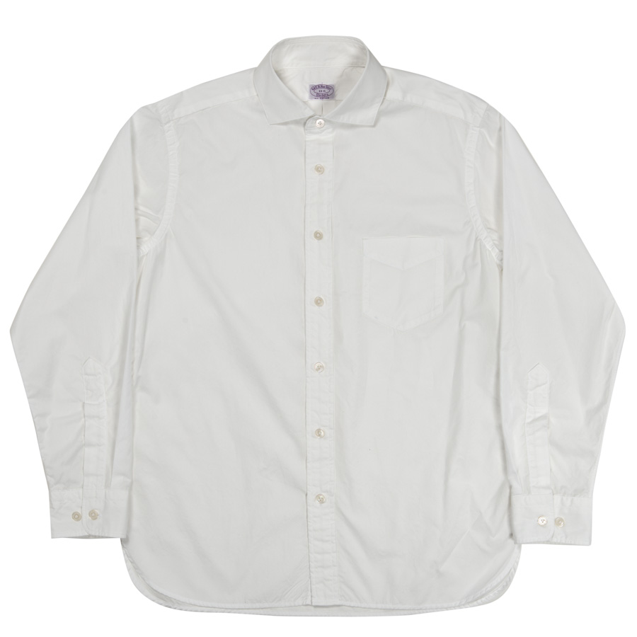 ワイドスプレッドのドレスシャツ。「ドレスシャツ」と言ってもWORKERSが作るからには芯は水溶性、洗うと接着が無くなりフラシ芯に。縫製も綿糸。現行ドレスシャツメーカーのそれと違いごく柔らかく作っています。