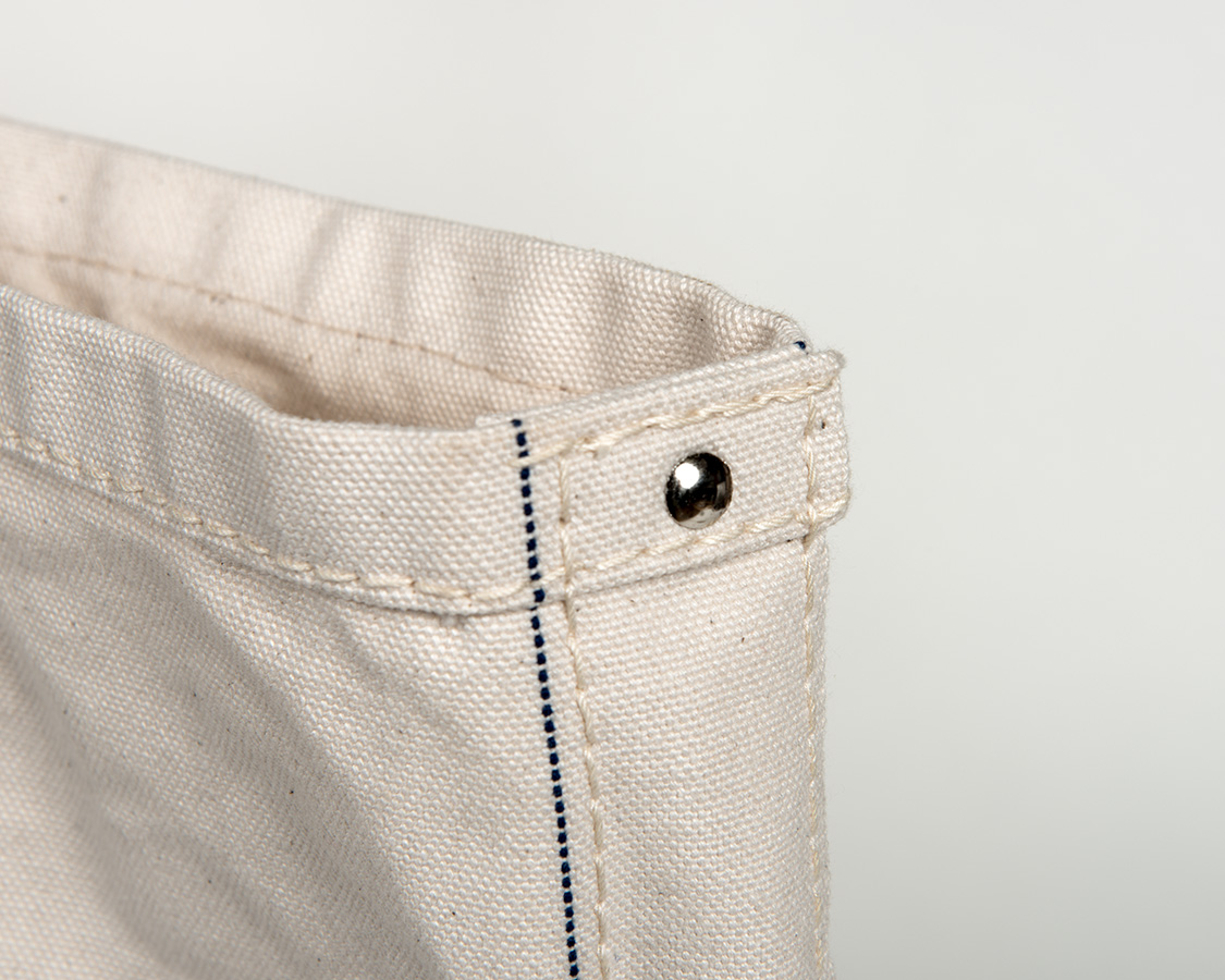 別注6号帆布を使ったツールバッグ。ラージの大きさに合わせて幅を指定して織っています。