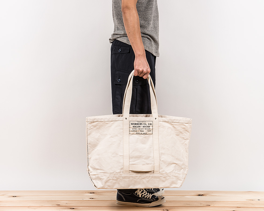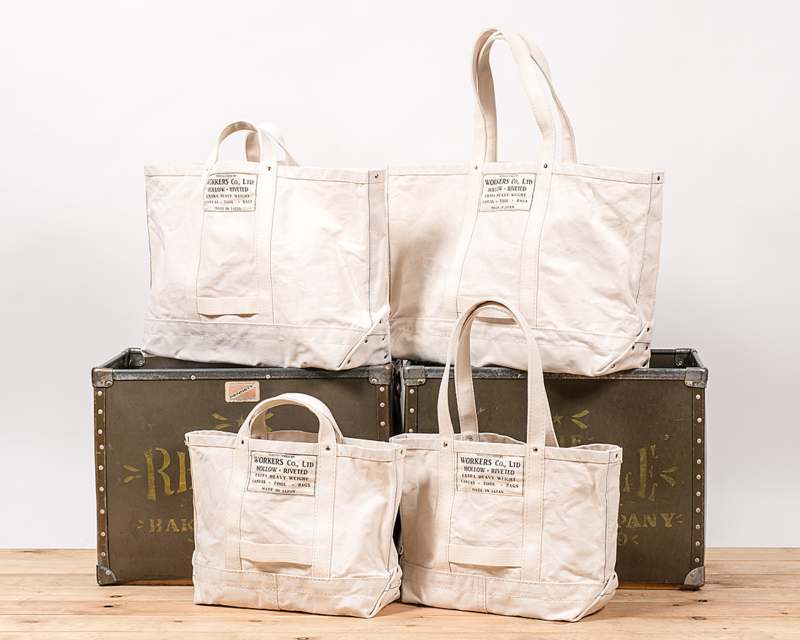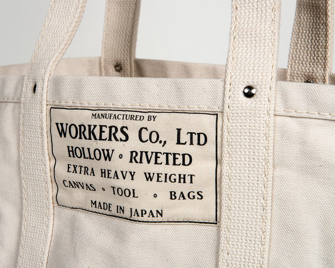 HOLLOW RIVETEDが先割れリベット。とても重いキャンバスのツールバッグ、もちろん日本製(WORKERSから車で20分です)。