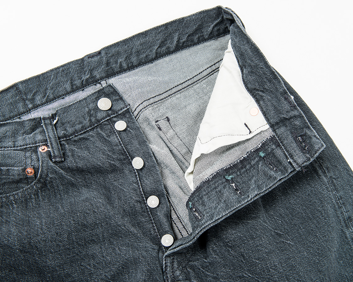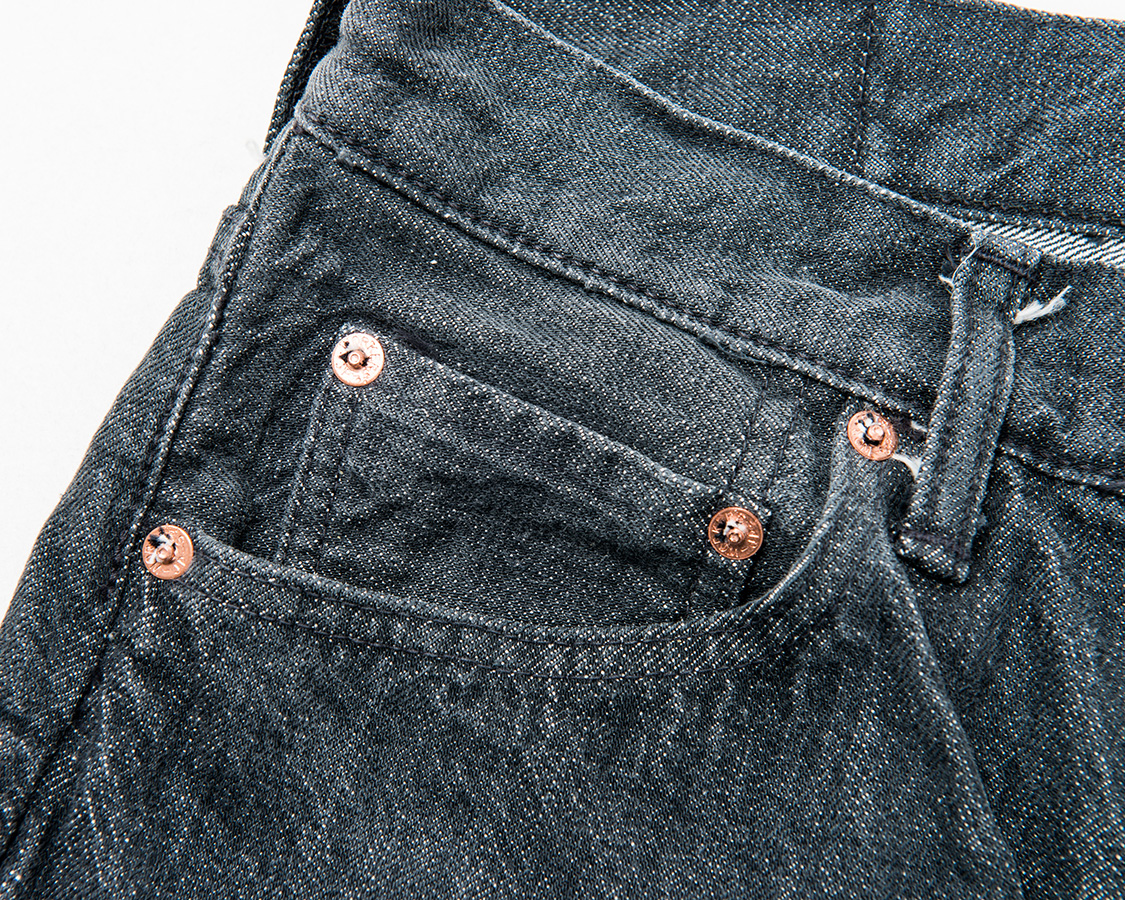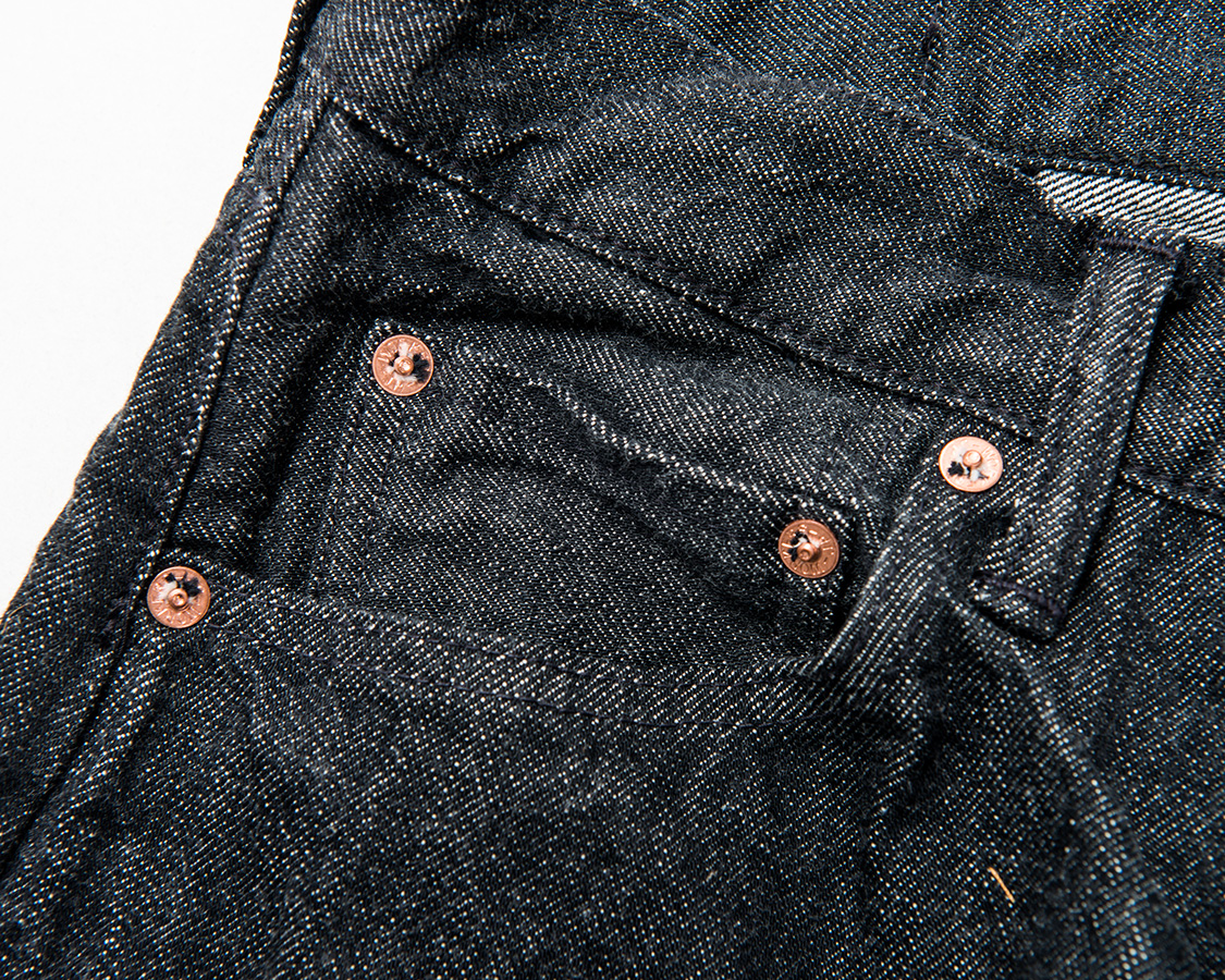 WORKERS定番の糸から作ったデニム。その色糸をロープインディゴ染めから硫化ブラック染めに変更しました。