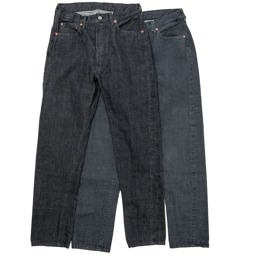 まず、今回のワンウォッシュとウォッシュドの色の違いを。それぞれ、単体で見るとわかりづらいですが比較すると良くわかります。特にWashedは脇のセルビッジのアタリ、キバタデニムの捻じれ具合が良くわかります。ただ、OWも良く見ると脇線は捻じれています。