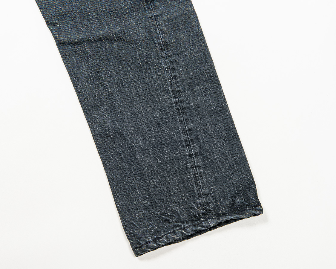 | やはりセルビッジジーンズと言えばここ、脇のアタリ。そしてキバタならではの捻じれ。今回はホワイツの短靴を合わせてみましたが、シンプルにオールスターよし。ドレスシューズメーカーの作るちょっとカジュアル目な短靴やブーツも合います。 |