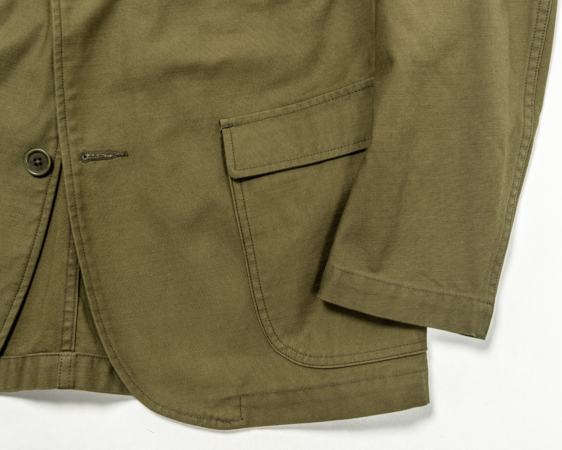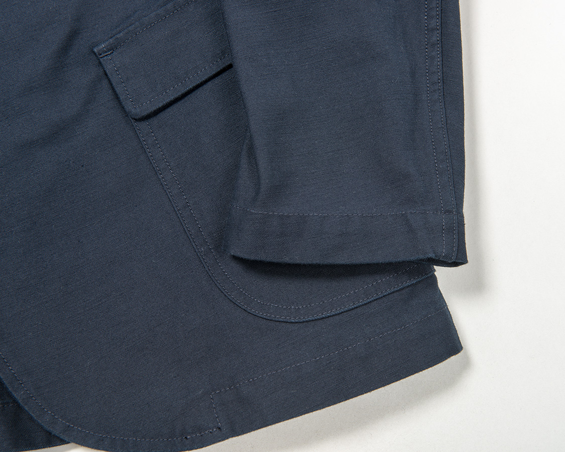ポケットは脇の縫い目に乗ります。この脇の縫い目を無くしてダーツにする方法もあるのですが、ある意味、この縫い目がWORKERSらしさでもあるので毎回、悩みながらも残している仕様です。