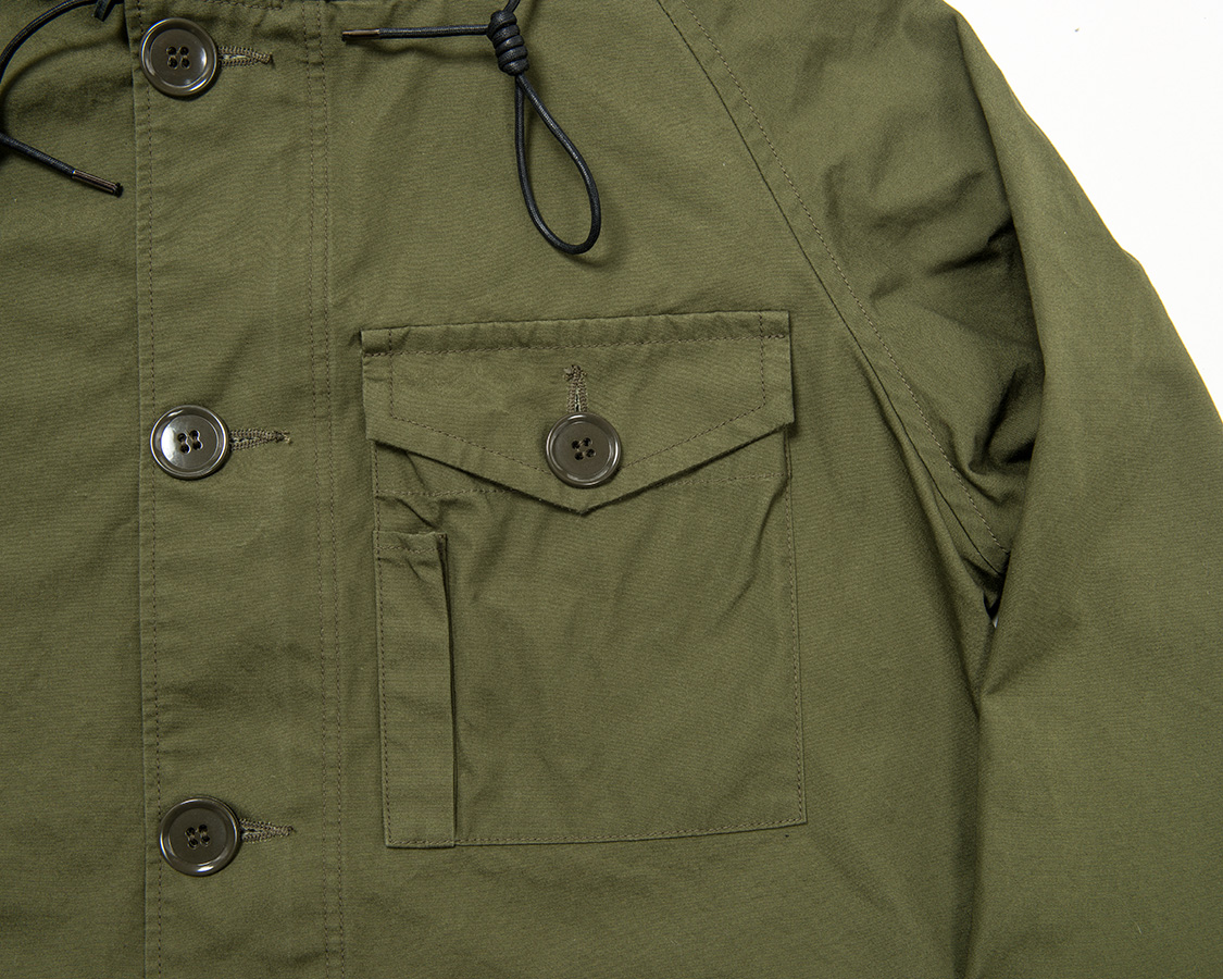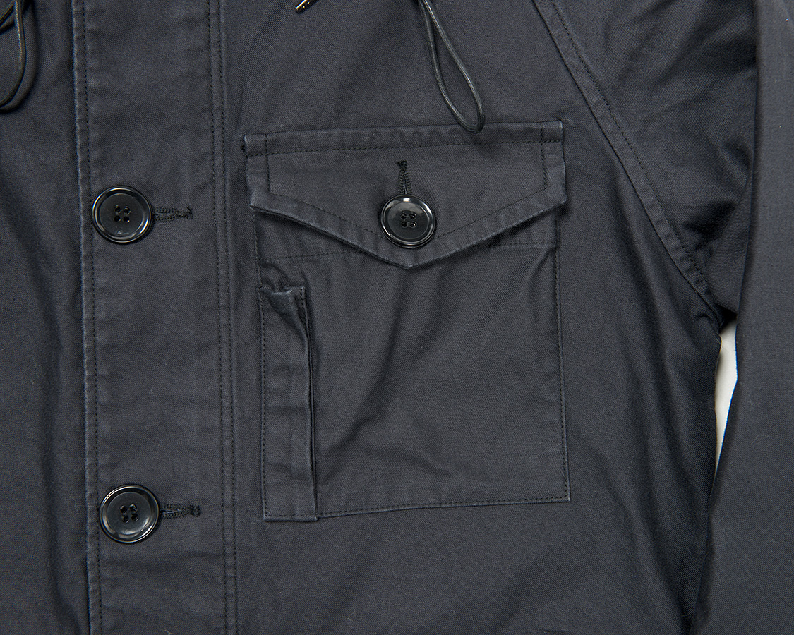 左胸ポケットはペン刺し付き。ペン刺しにマチがついた独特なデザイン。参考にした1950年代のRoyal Air Forceのパーカーから得たデザイン。