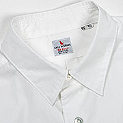 一つはアメリカンビンテージのドレスシャツ。TroyやArrowといったブランドの、ブロードクロスを使った物。ネームもそれらをイメージしたものに。一方、襟の形やフロントの始末はDCブランドから。