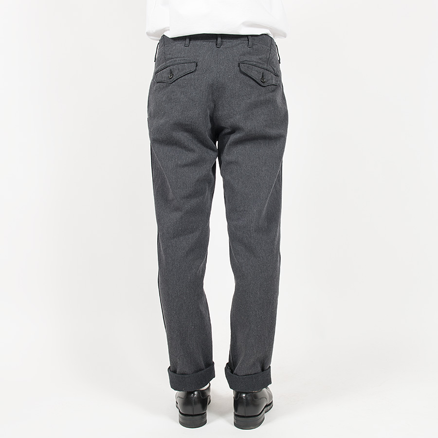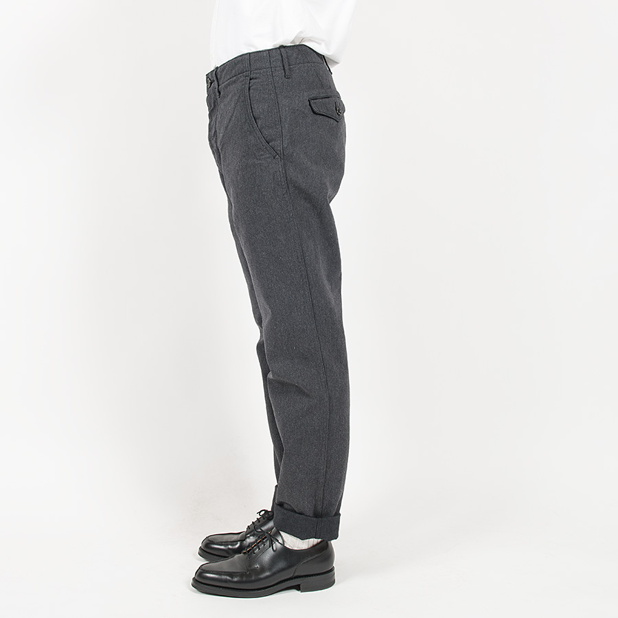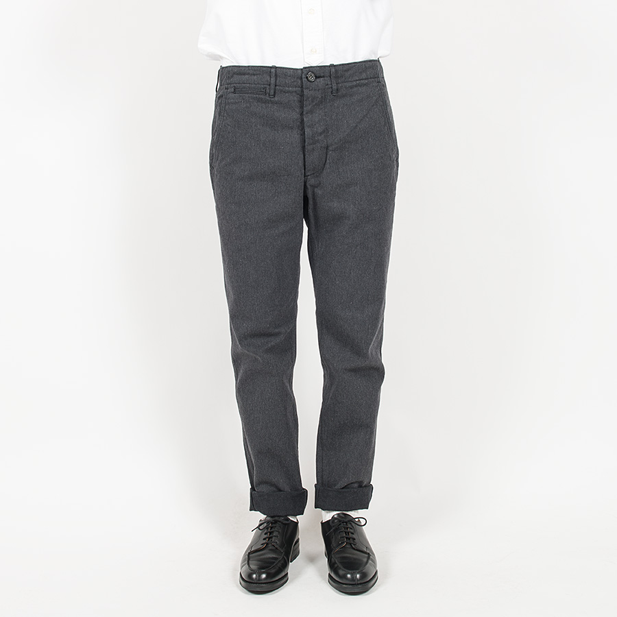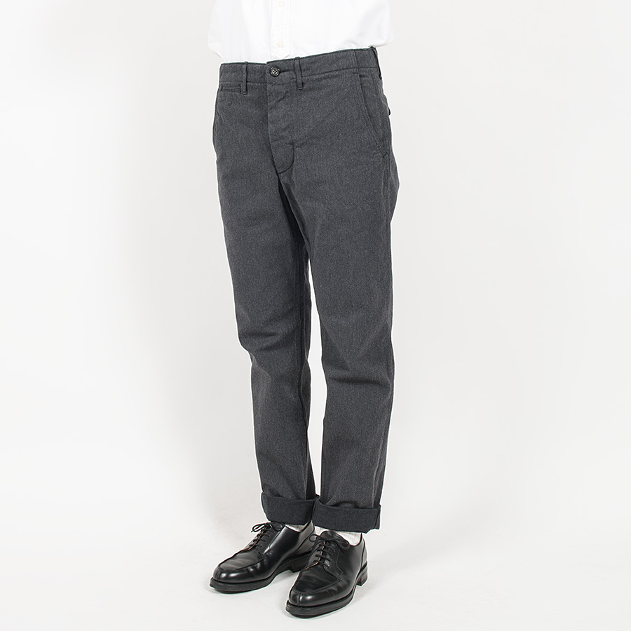 おなじみ、古今様々なチノパンを混ぜて作ったWorkers Officer Trousers。17FWでは「Class2」、脇が巻き縫いバージョンを作ります。