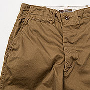 USMC KhakiはUSMCのチノに見られる濃いめのカーキ系。もう一色の白系のベージュよりかなり土臭いイメージ。10オンス程度で、通年はける厚みです。