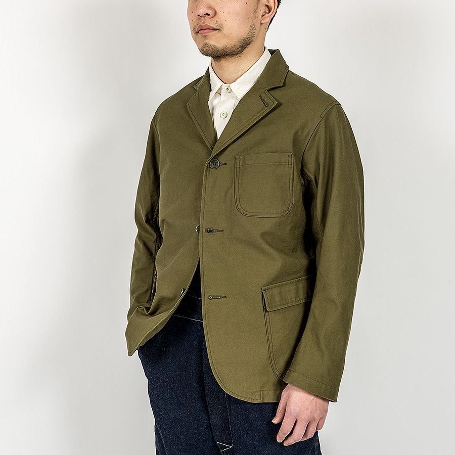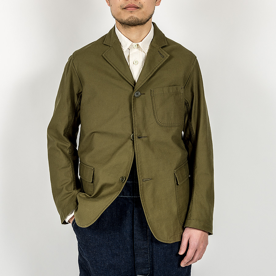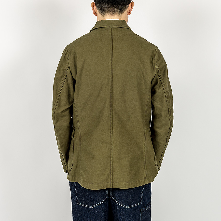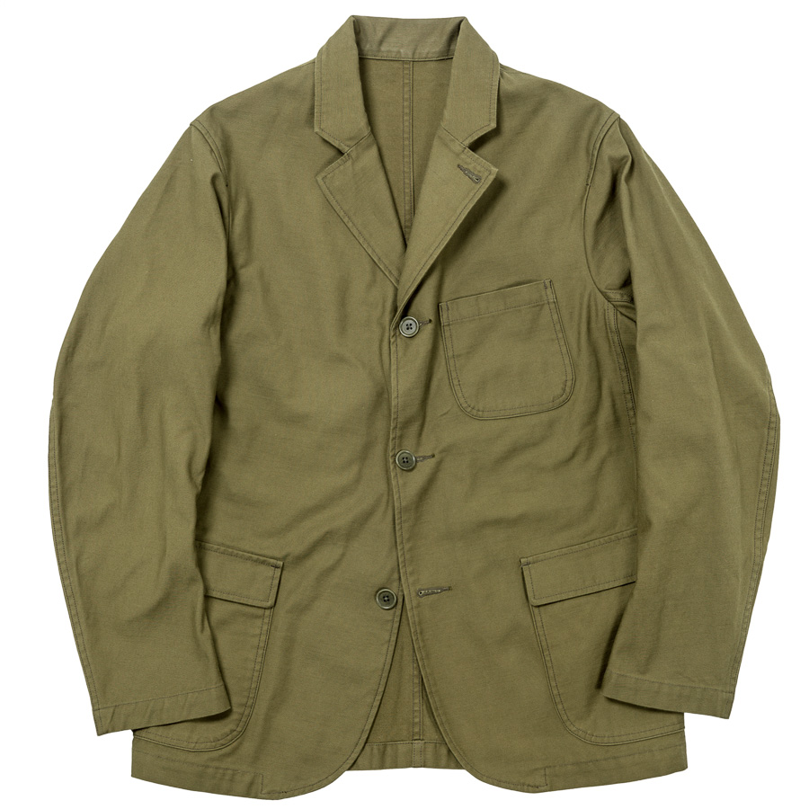 バックサテン、ODは一番カジュアルな色。色自体、埃も見えづらい。ラフに使える、カバーオール的なジャケット。コーディネートはオーバーオールに合わせてますが、ブラックジーンズにミリタリー系トップスも男らしくてかっこいい合わせ。