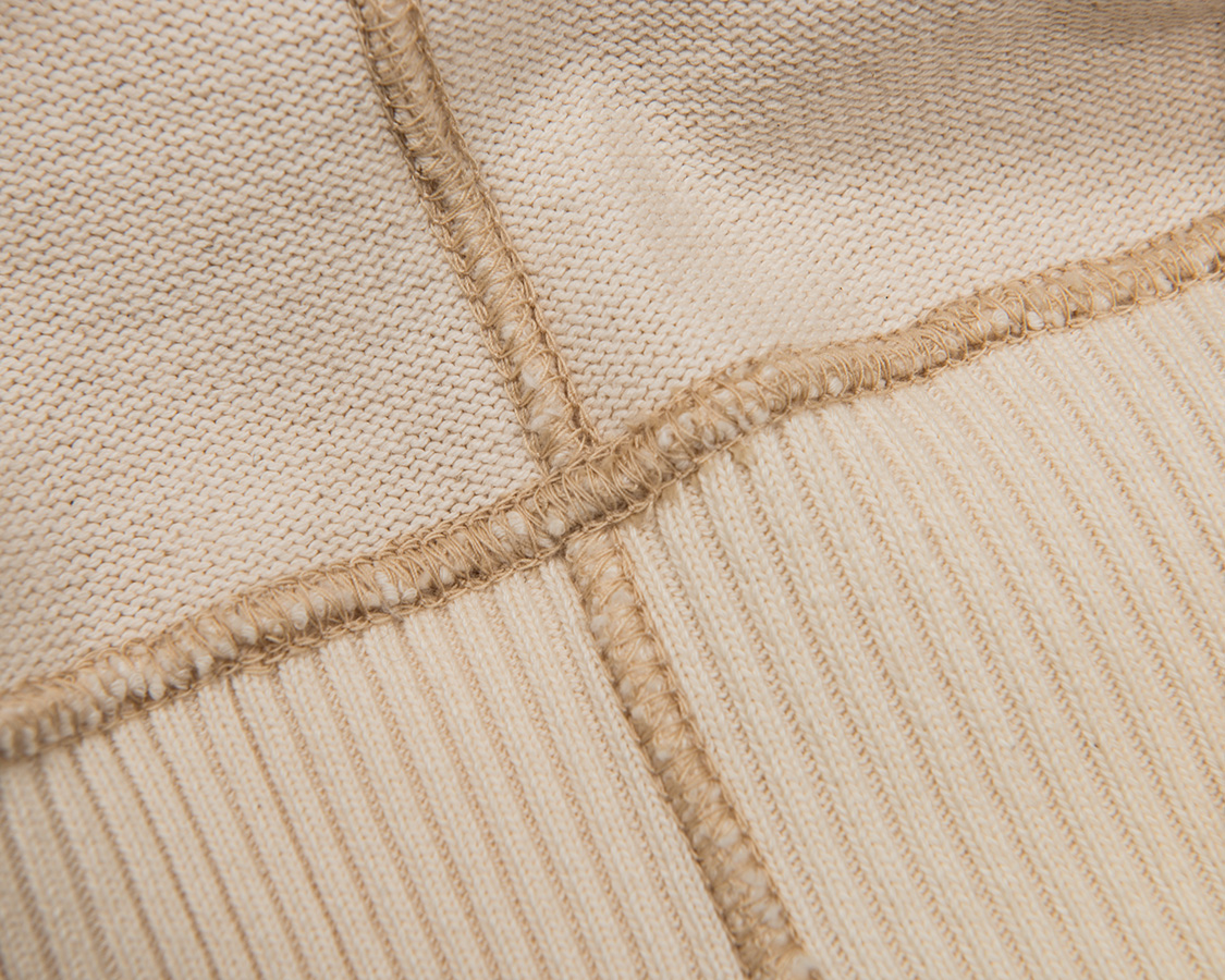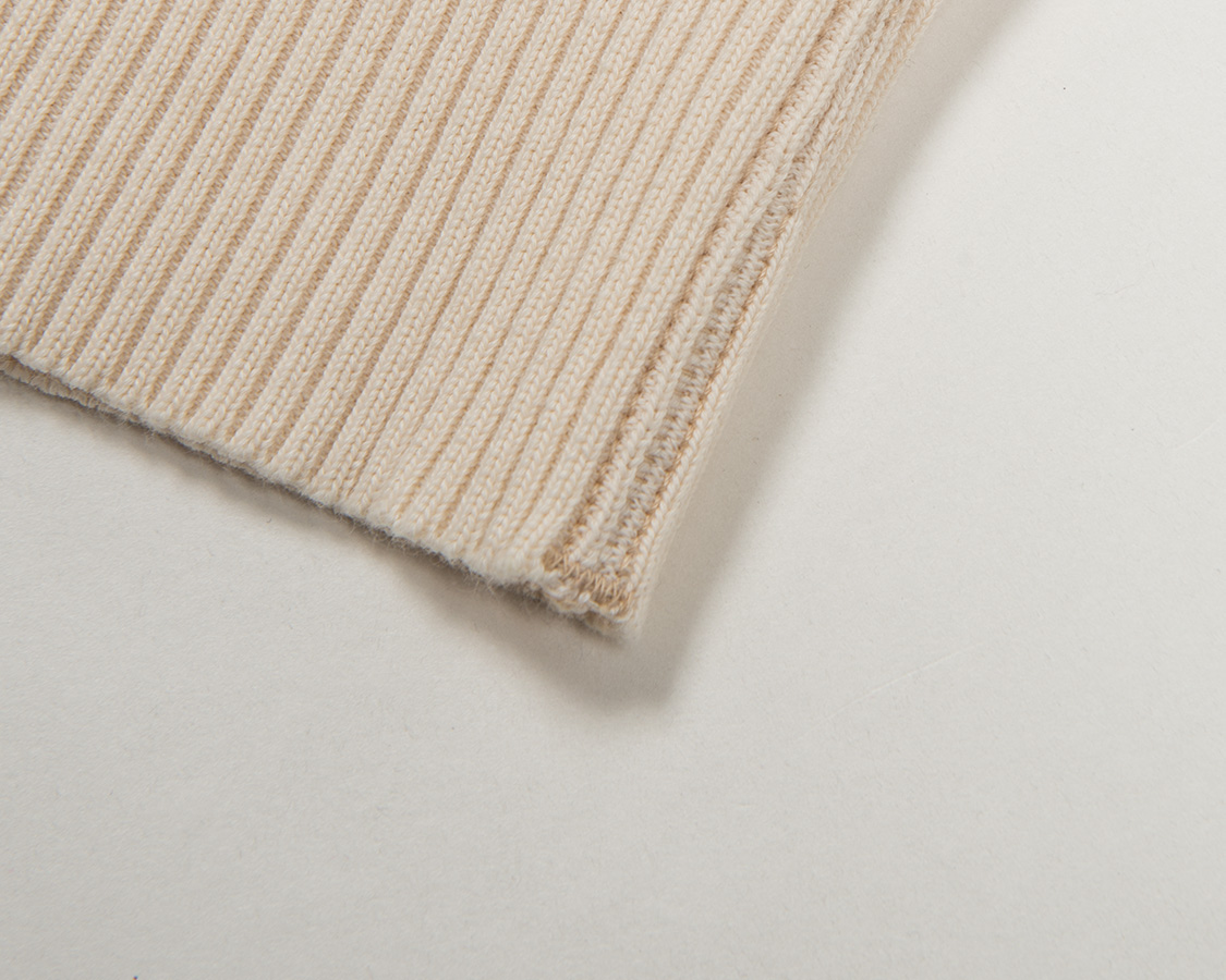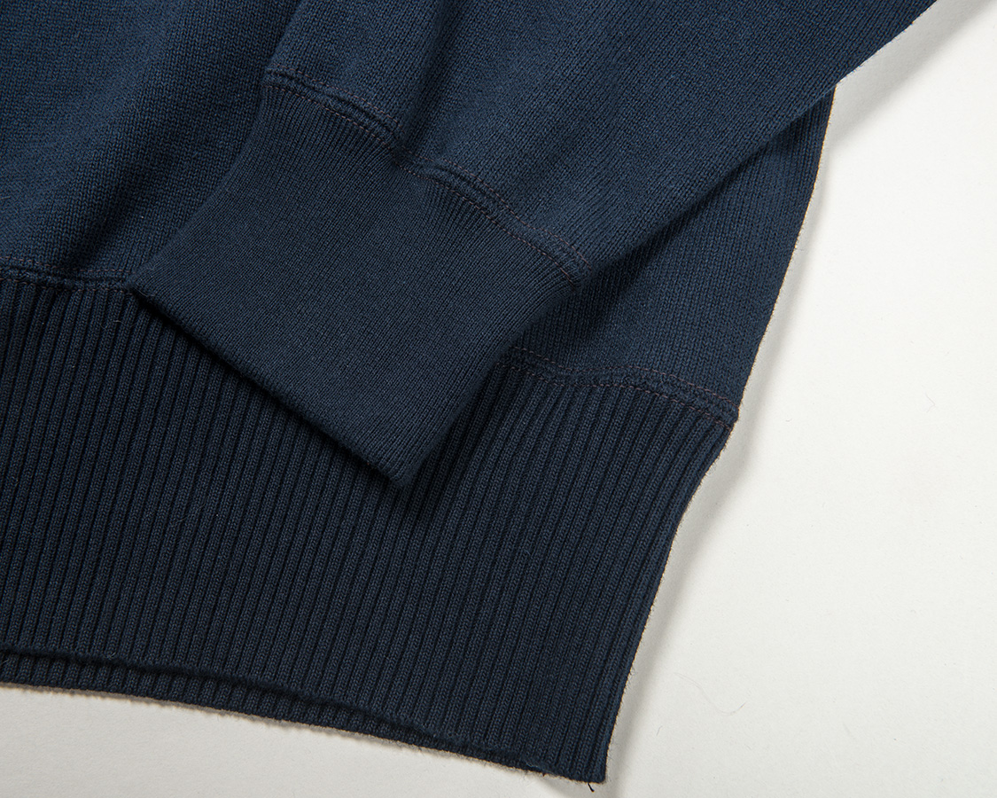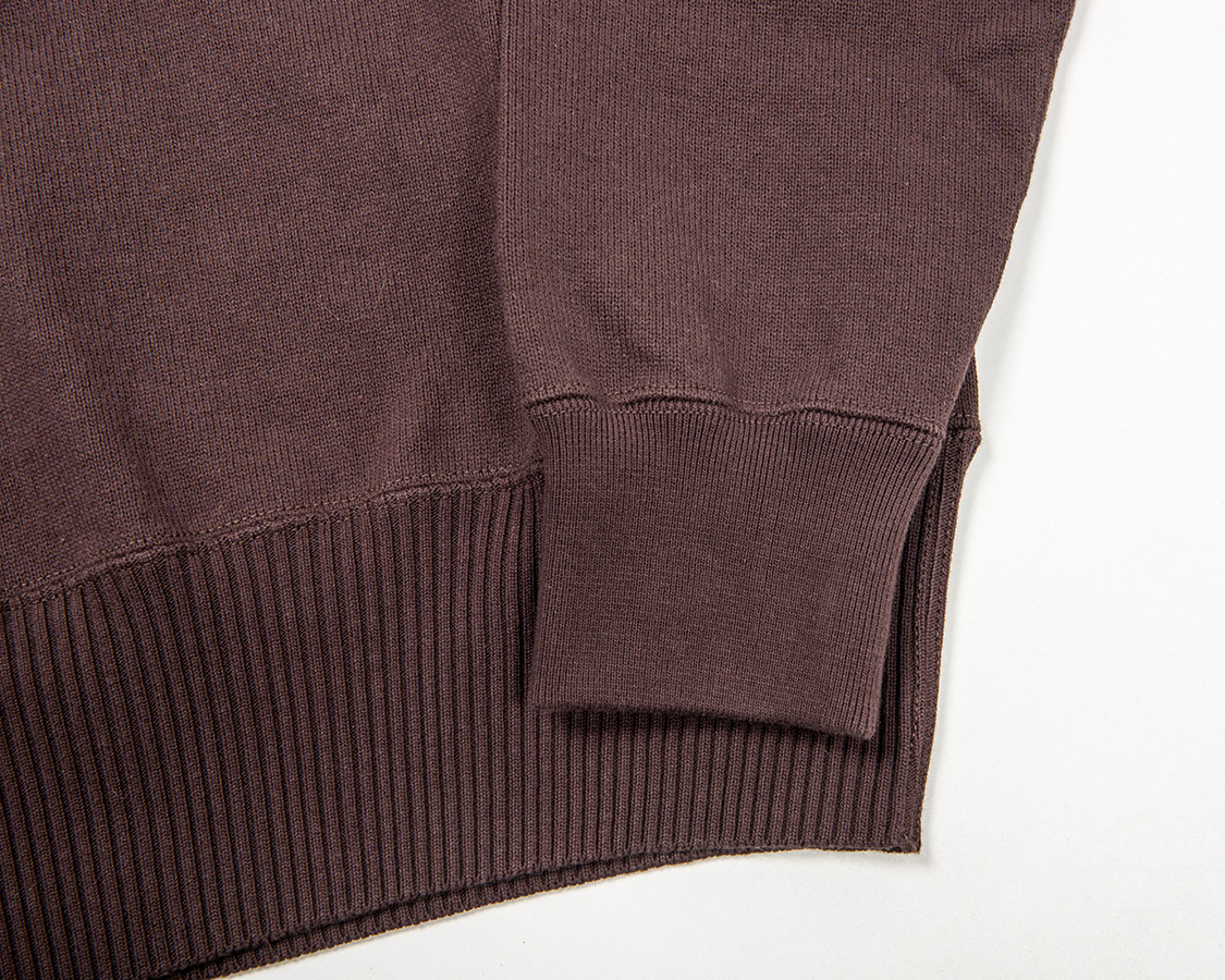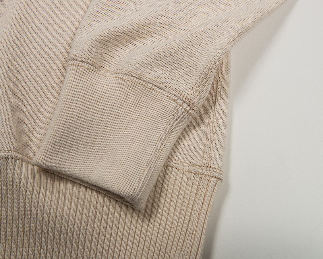 袖口のフライス。裾は針抜きフライス(リブ)。このあたり、参考にしたビンテージのセーターから。
