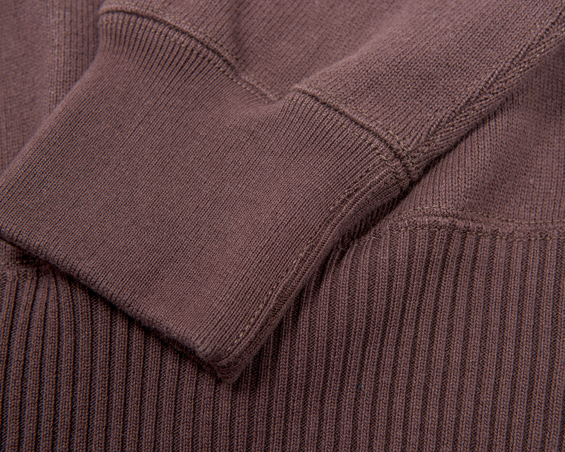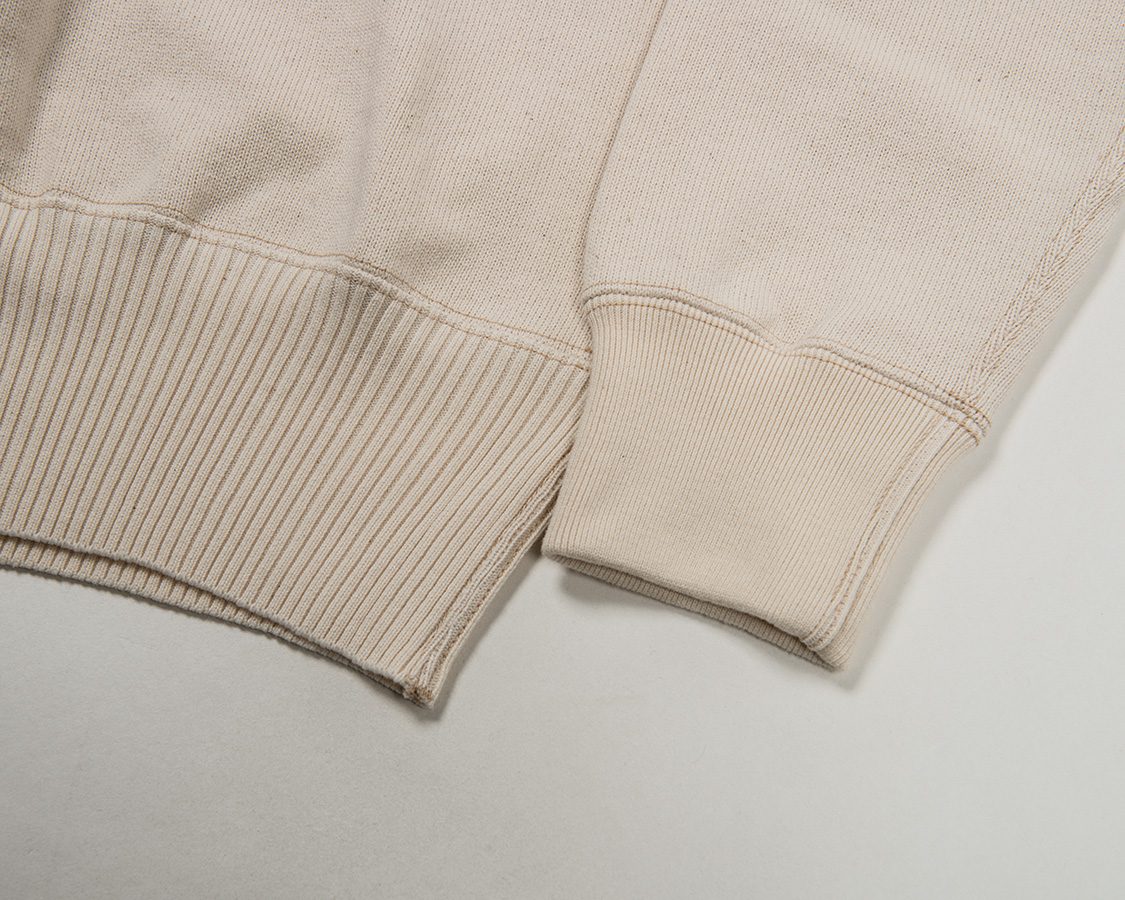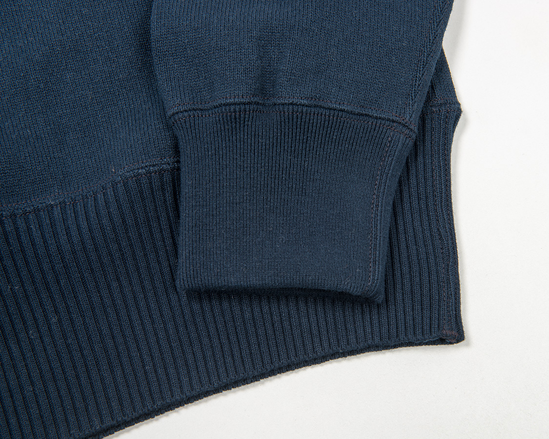 袖口リブ、二重になって見えない部分ですが、ここも縫い繋いだ後にマタギステッチで縫い代をつぶしています。見えない部分でも、縫い代が立つと手首に当たって気に成るので。