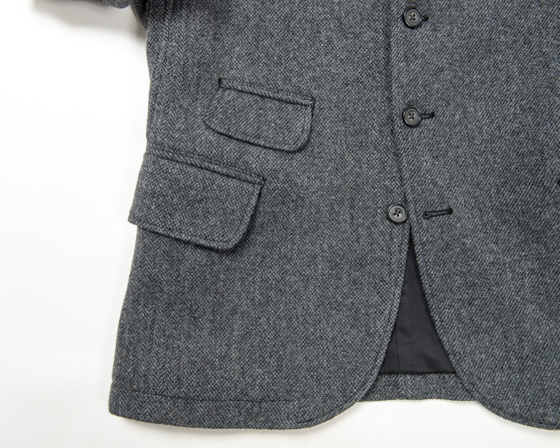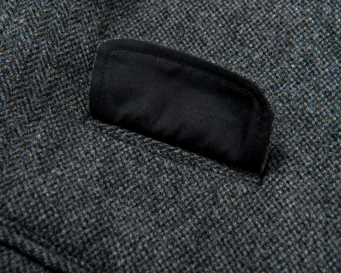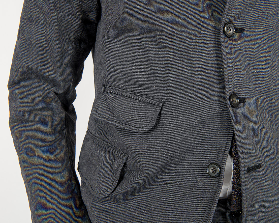 今回、初めて身頃裏地に無地コットンの綾織を使いました。それも、いつも定番的に使うコットン裏地よりも少し厚手のしっかりしたものを。ほんのわずかな裏地の厚みの違いでも、雰囲気は変わるのです。