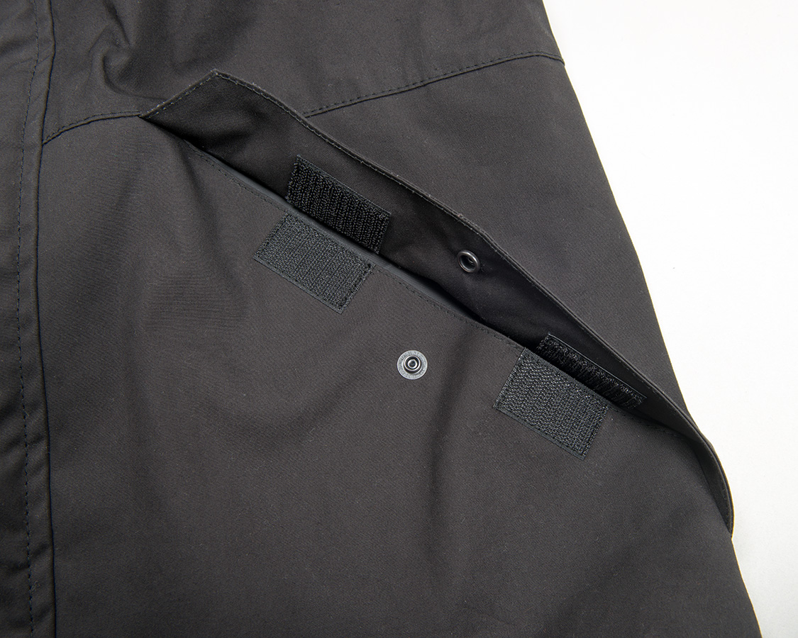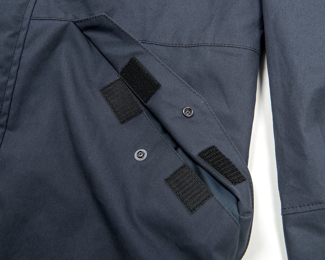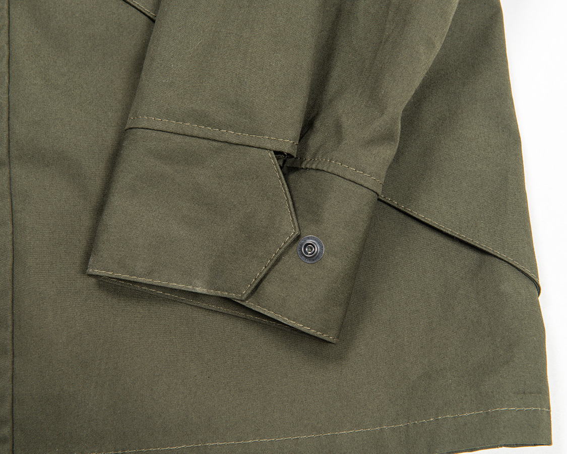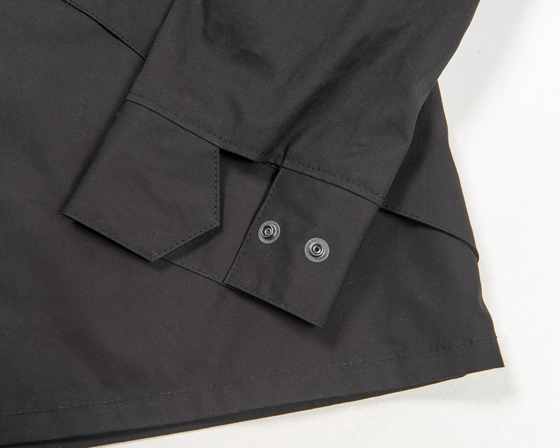 袖口、オリジナルはマジックテープですが、ここはあえてスナップに。シンプルな仕様なのですが、バイク乗るときに使ってみてもグローブを中に入れて、ぐるっと止めると中々の機能性。