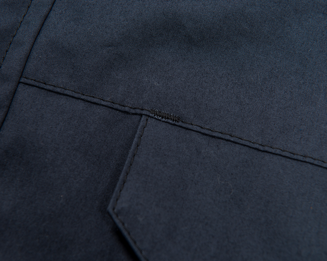 特徴的な腰ポケットのデザイン。ここもオリジナルは摩訶不思議かつ、すごく複雑な縫い方をしているのですが、Modではアレンジしてシンプルに。スナップに補助でマジックテープ付。