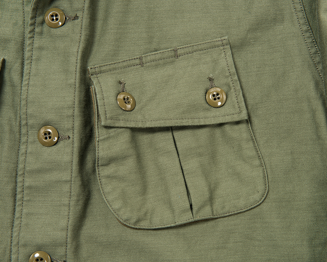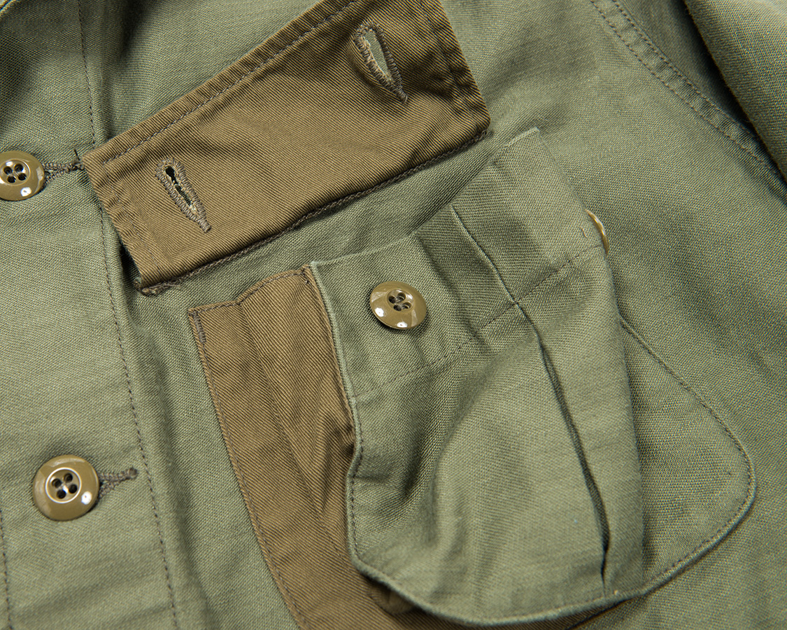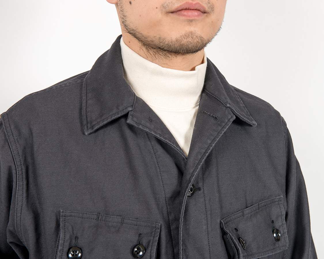古着でおなじみ、ファティーグジャケット。型紙はオリジナルを参考にせず、ジャケット型を元に。ポケットの大きさから着丈まで、すべて現代的な感覚で見て「バランスが良い」と感じる寸法を目指しました。