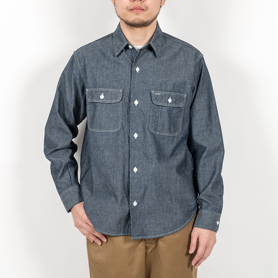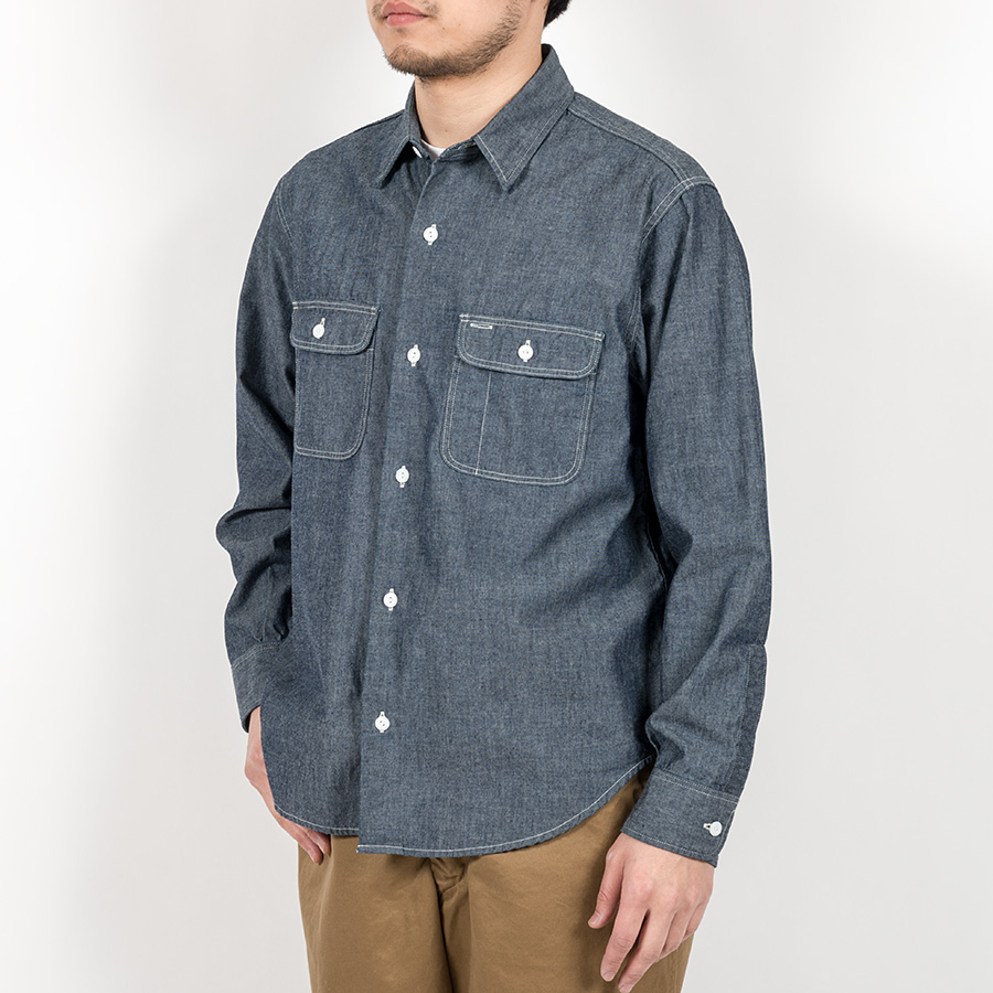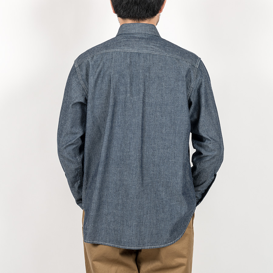 素材は5オンス、ダークトーンのブルーシャンブレー。