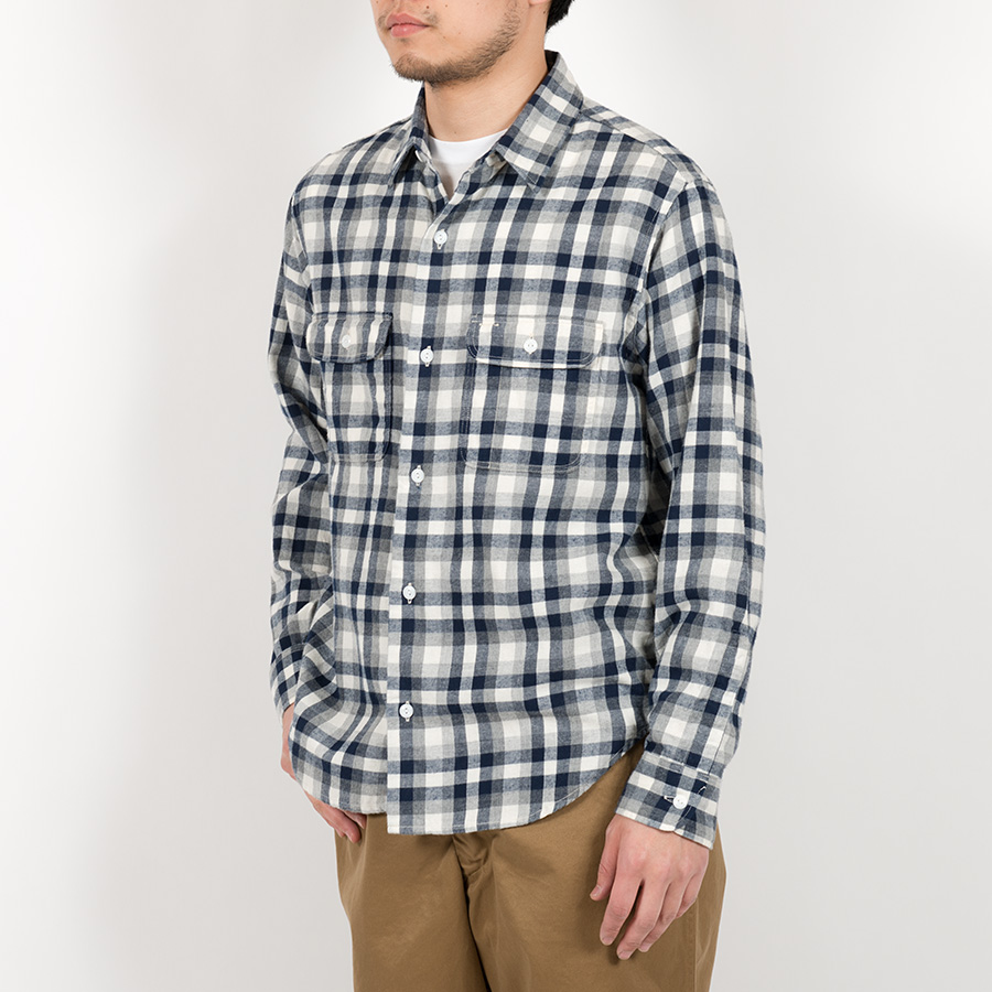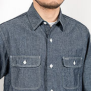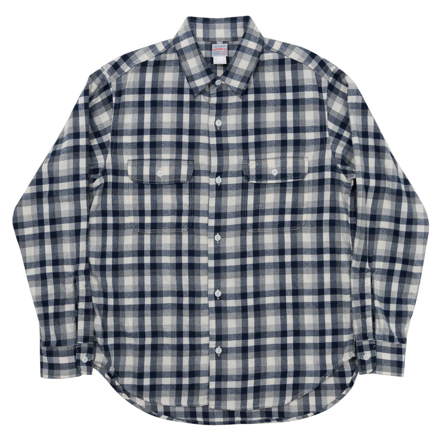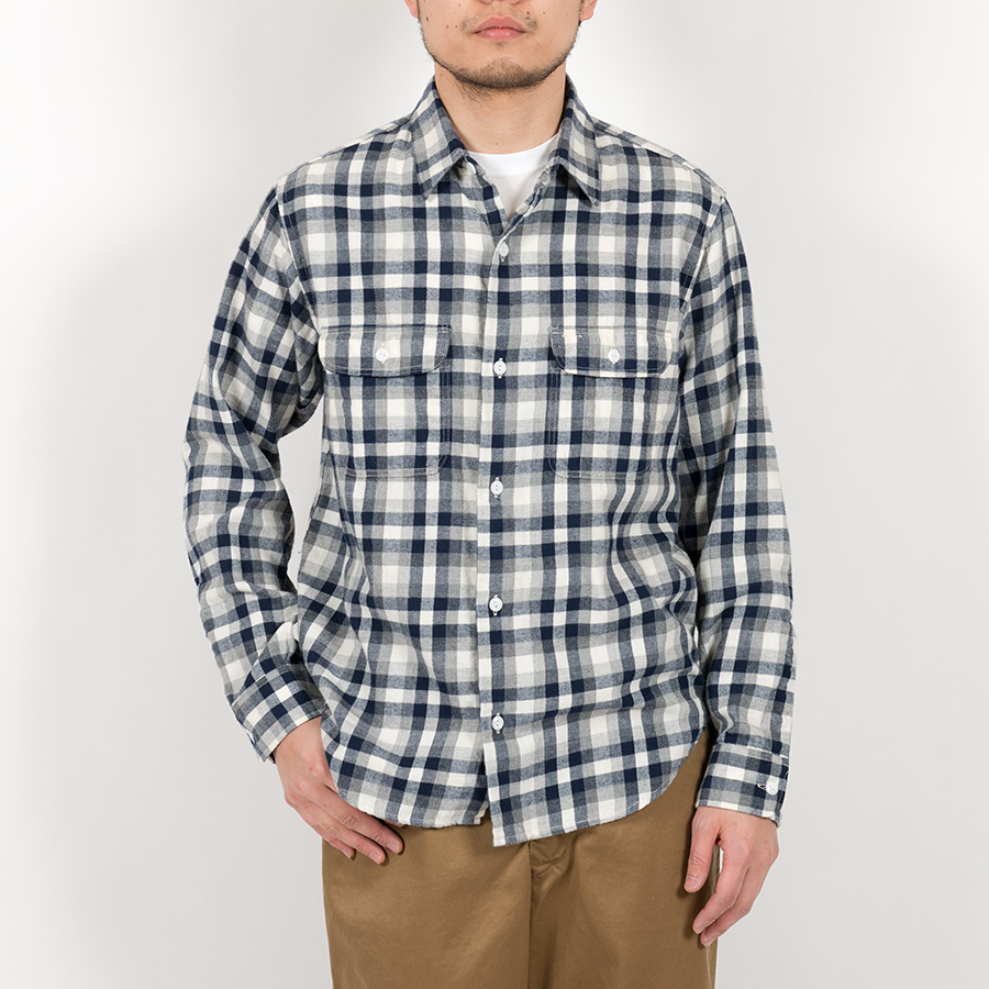 サイズは今までのWORKERSで13.5/14.5の方がビッグ14.5、15.5/16.5の方がビッグ15.5といった設定です。形はフロントのステッチをなくし、よりシンプルなワークシャツに。