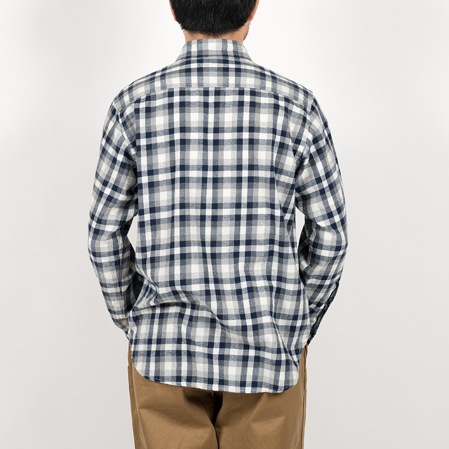 チェックは色糸部分をインディで染めたこちらもツイル(綾織)生地。ごくわずかに起毛がかかっていて、柔らかく、肌触りが良いのが特徴。他の素材より少し軽くて4 オンス程度。