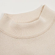 この「横」というのは編み機の形で、Tシャツやスウェットに使う天竺・裏毛は丸い形の「丸編み機」で編むことが多く、袖口、ネック、裾に使ったようなフライスは丸編みでも編めるのですが、今回のように細かく寸法や編み方を変えたいとなると「横編み機」の方が向いています。そういった「横編み機」で部品を作ることを総称して「横付属」と呼んでいます。