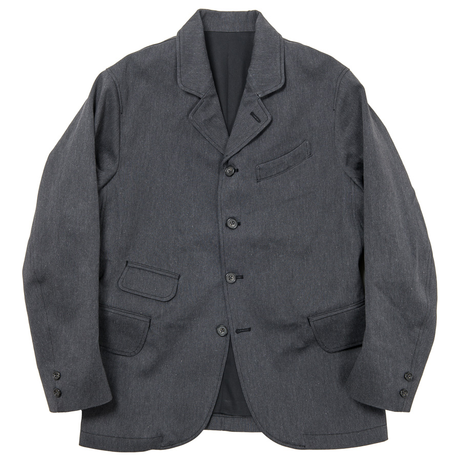 「よりクラシカルなジャケットを」から始まり、フロントは四つボタン。小さなラペル。襟の角も丸みを帯びた。古いジャケットのフロント回りを見てイメージを膨らませました。