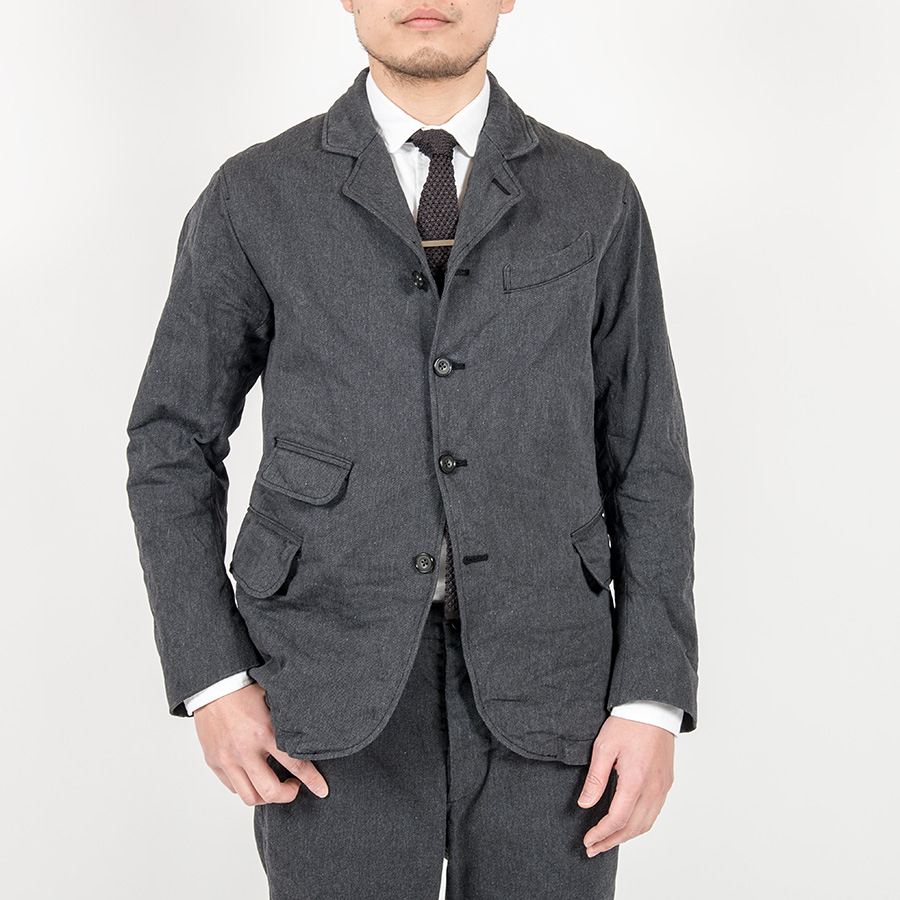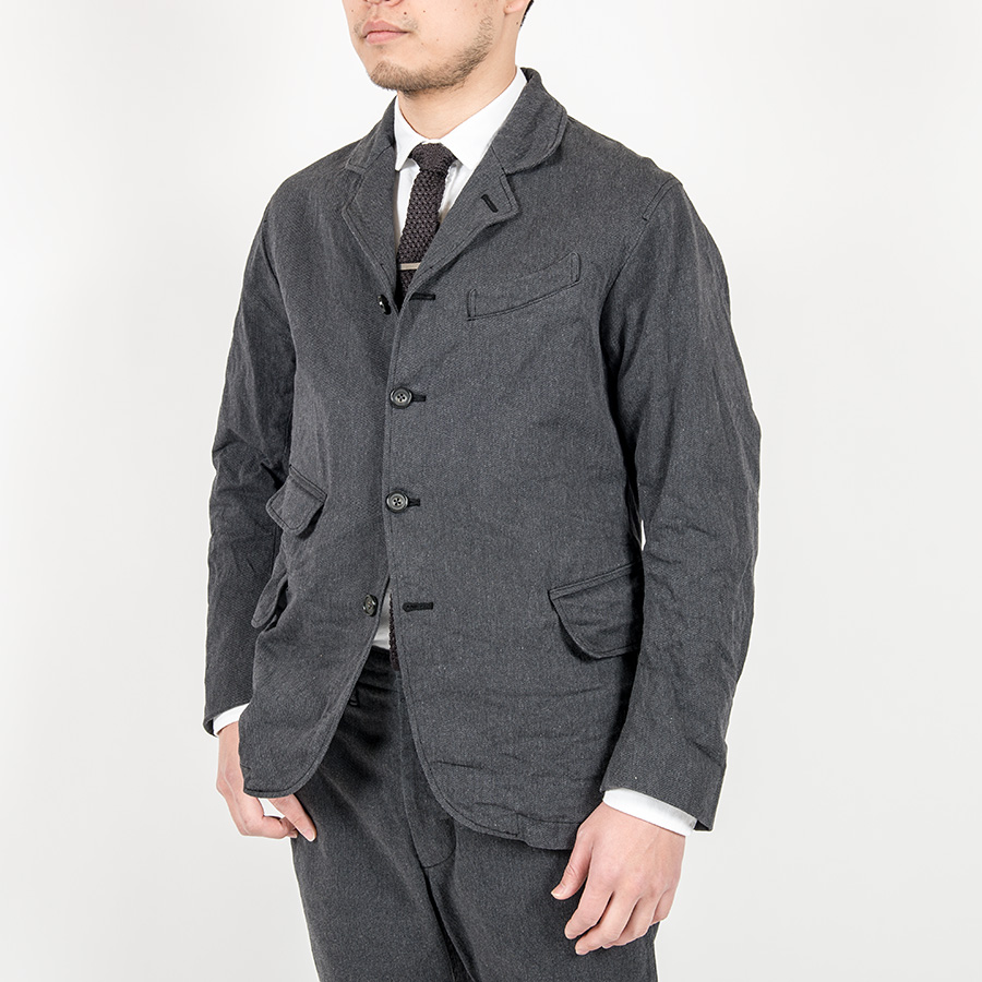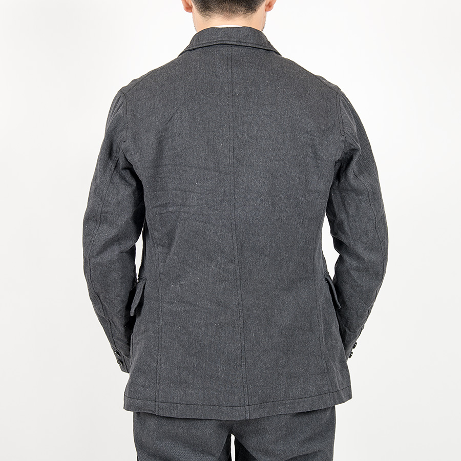 裏地も今まではアメリカントラッド的にストライプを使っていましたが、今回はシンプルにブラックの厚手ツイル。袖裏は滑りの良いキュプラで着心地も考えています。