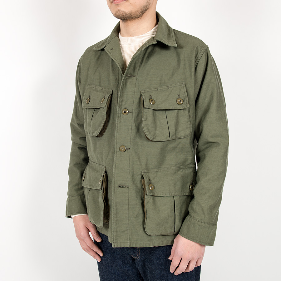 脇からのポケット、手を入れやすいよう浮きをつけているのでは ベタっと平らにならず皺が出ています。この皺が手の入れやすさを生んでいます。 中にはシャツも良いですが、私自身、襟+ 襟がちょっと苦手。襟+ ジャケット系のラペルならば気にならないのですが。そうなると、インナーはカットソーやセーターがおすすめ。下がジーンズならばどの色でもOK。下がオリーブ系の時は 上はオリーブを避ける。下がチノならやはり同素材は避ける。色をセットアップにしなければ、ボトムは何をはいても。 カジュアル系のジーンズや軍パンよし、逆にドレス的なウールパンツにセーター+ ファティーグ、足元はきりっとしまっ た革靴が合うのではないでしょうか。