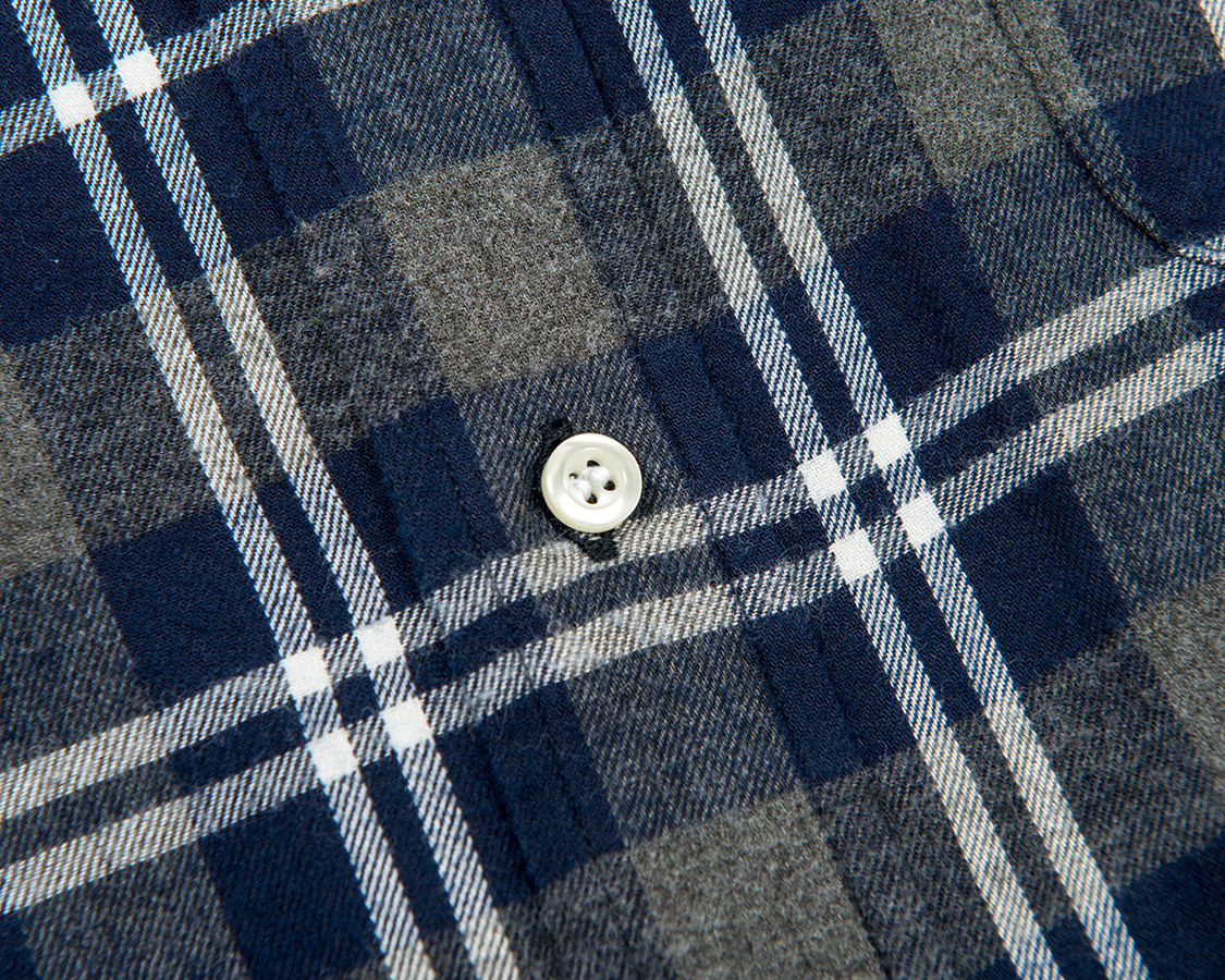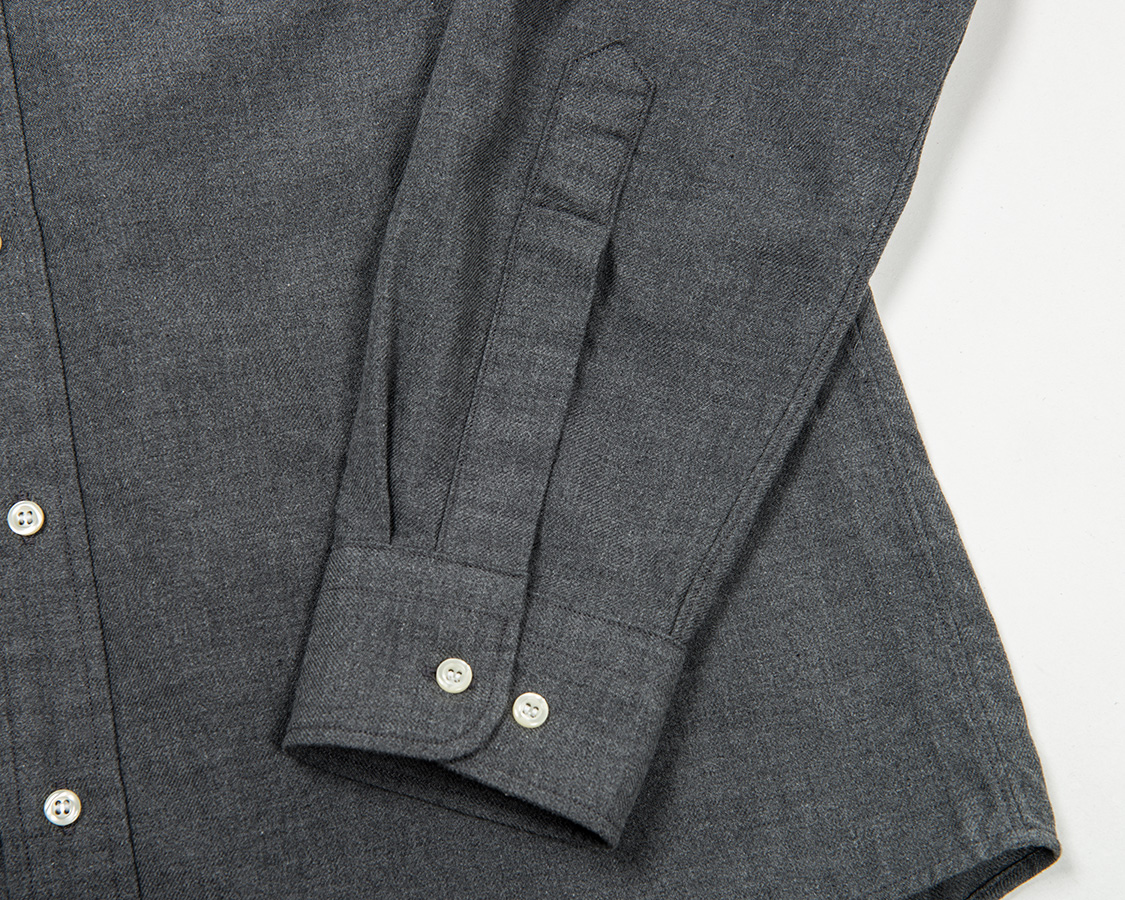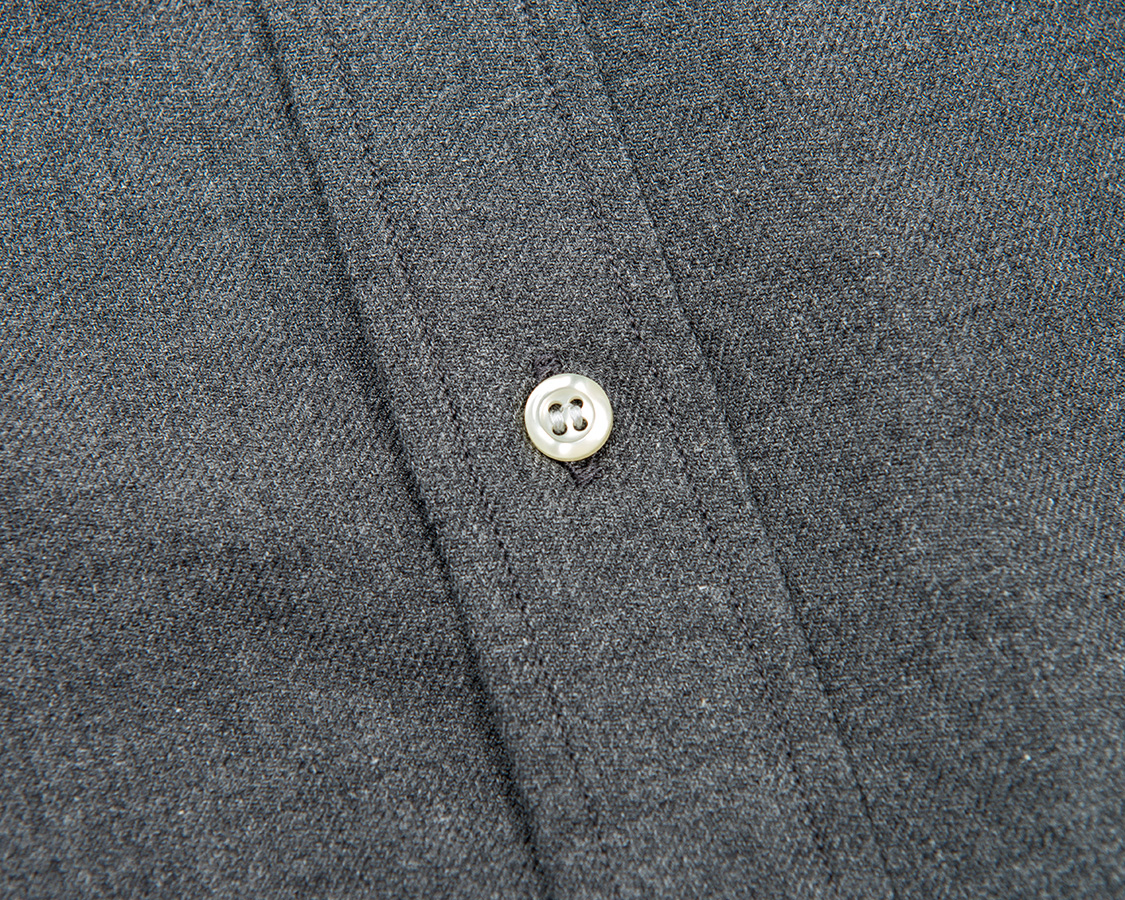 フロントは多本針で前立てを。ここを環縫いで縫うのが、アメリカっぽいドレスシャツの特徴。