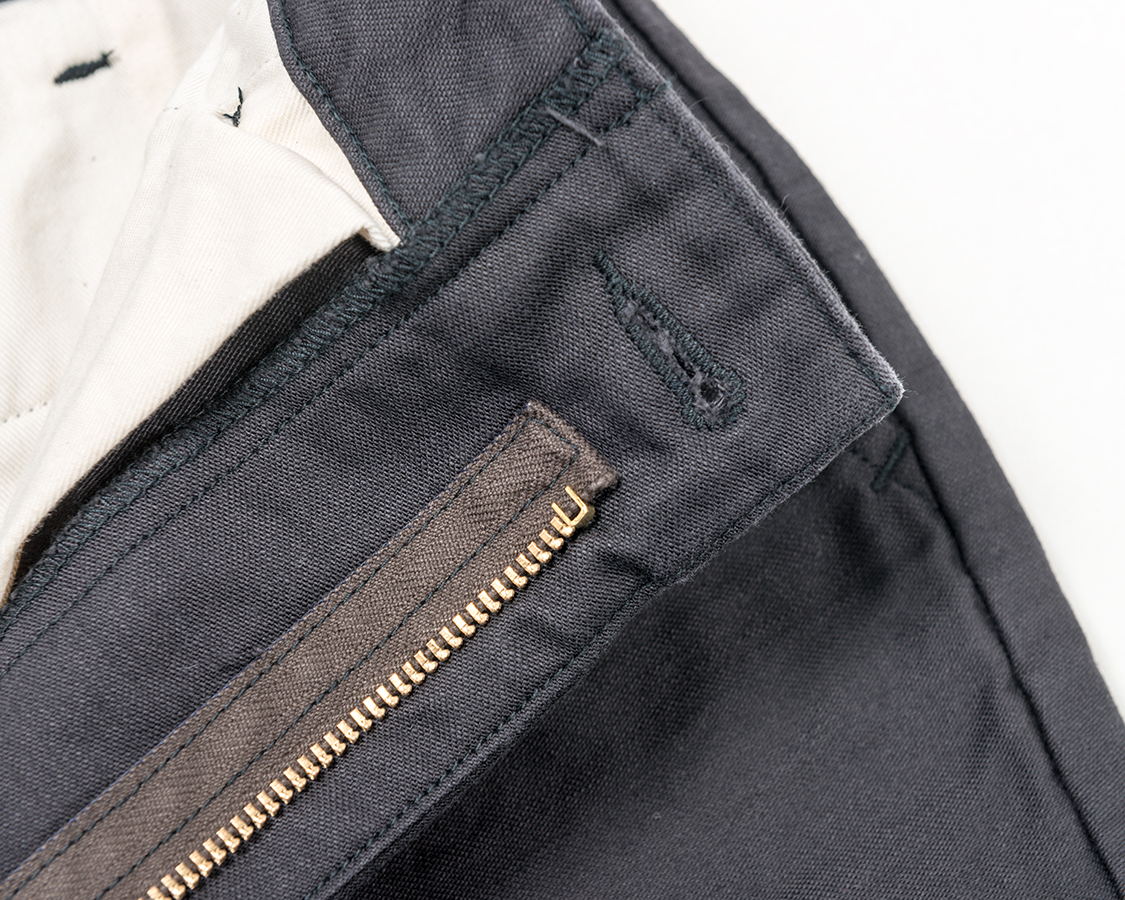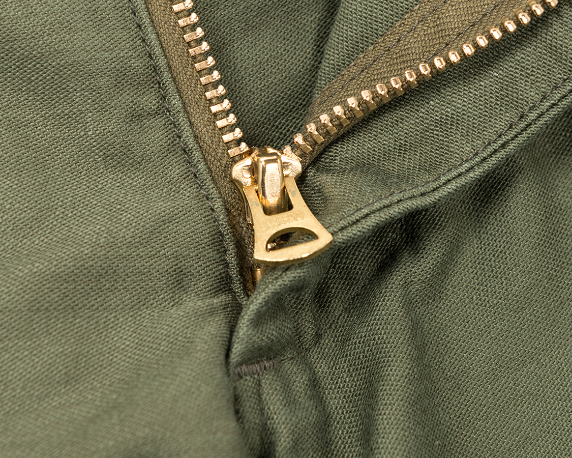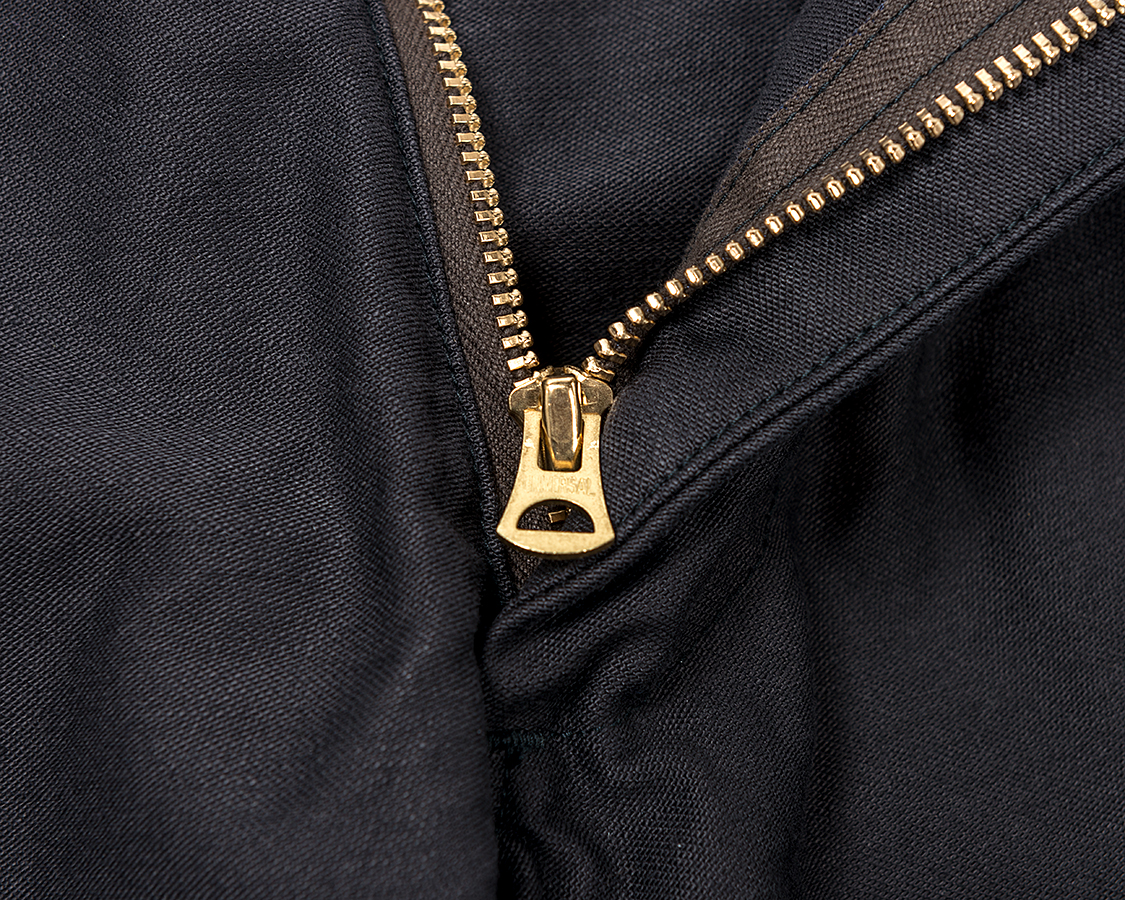 フロントはファスナー。17SSではボタンでしたが、厚手の生地にボタンだと開け閉めがしづらいのでファスナーに変更しました。