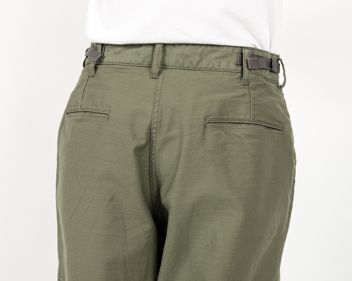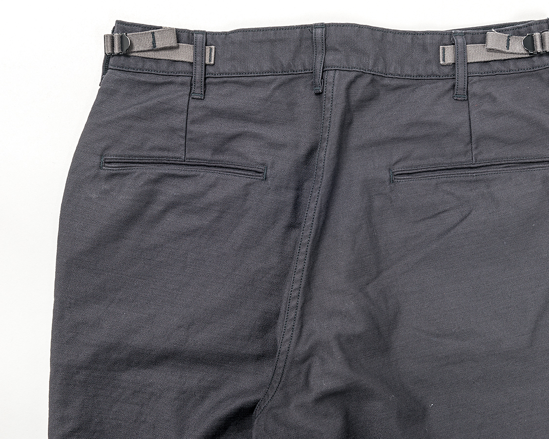 バックはダーツがあるので、ヒップに適度な丸みが出ます。尻ぐりが食い込まなず見苦しく無い。かといって、ゆとりがありすぎて、ぶかぶかにも見えない。良いシルエットが出来ています。