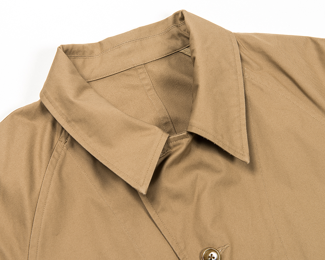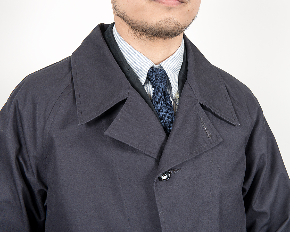 開けば大き目の襟。でも、この大きな襟は立てるためにあるのです。寒い時に立ててマフラー替わりに。