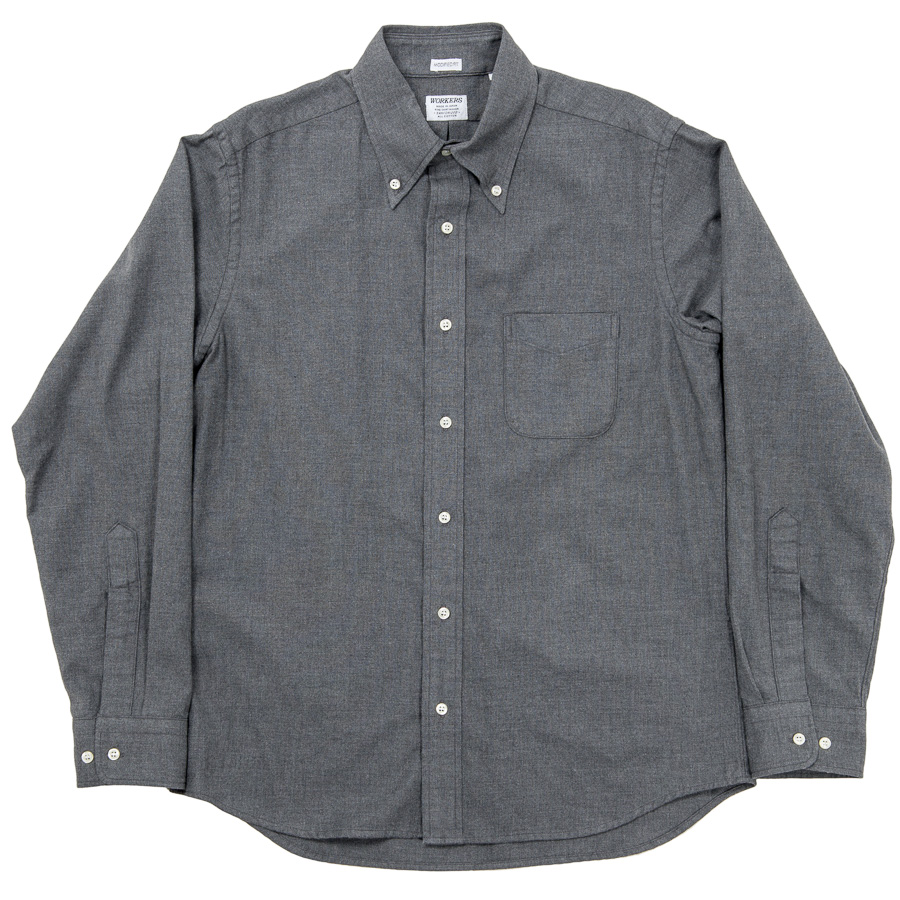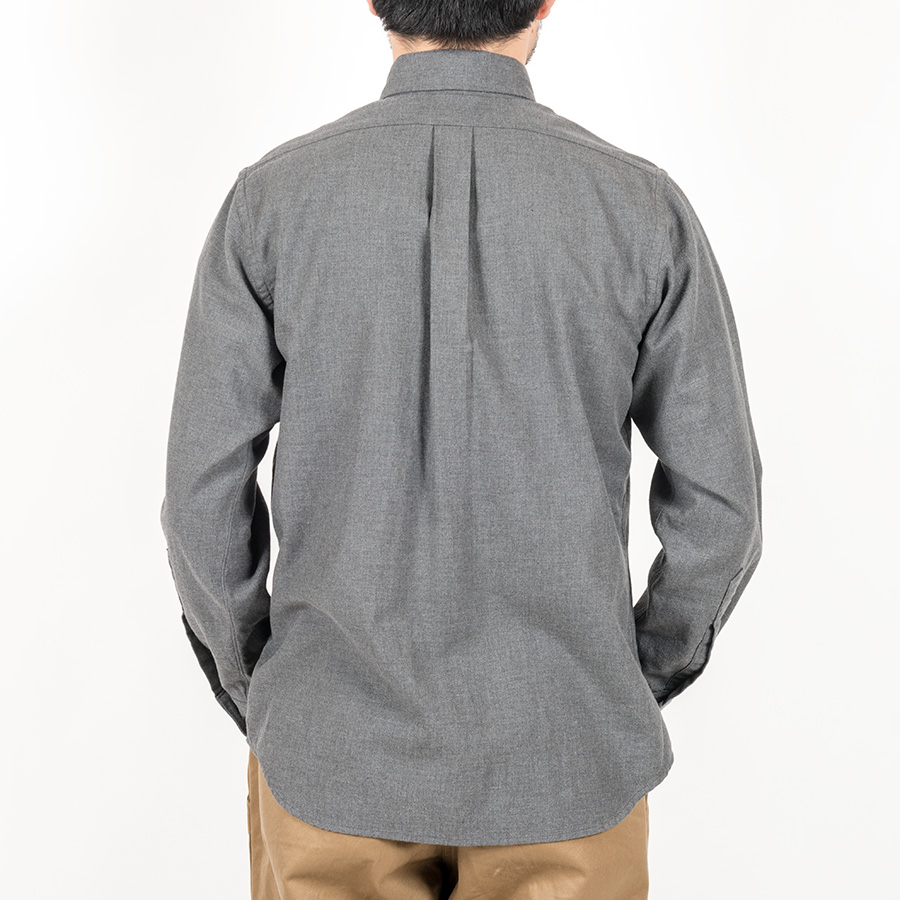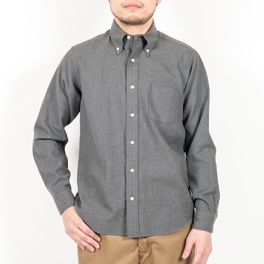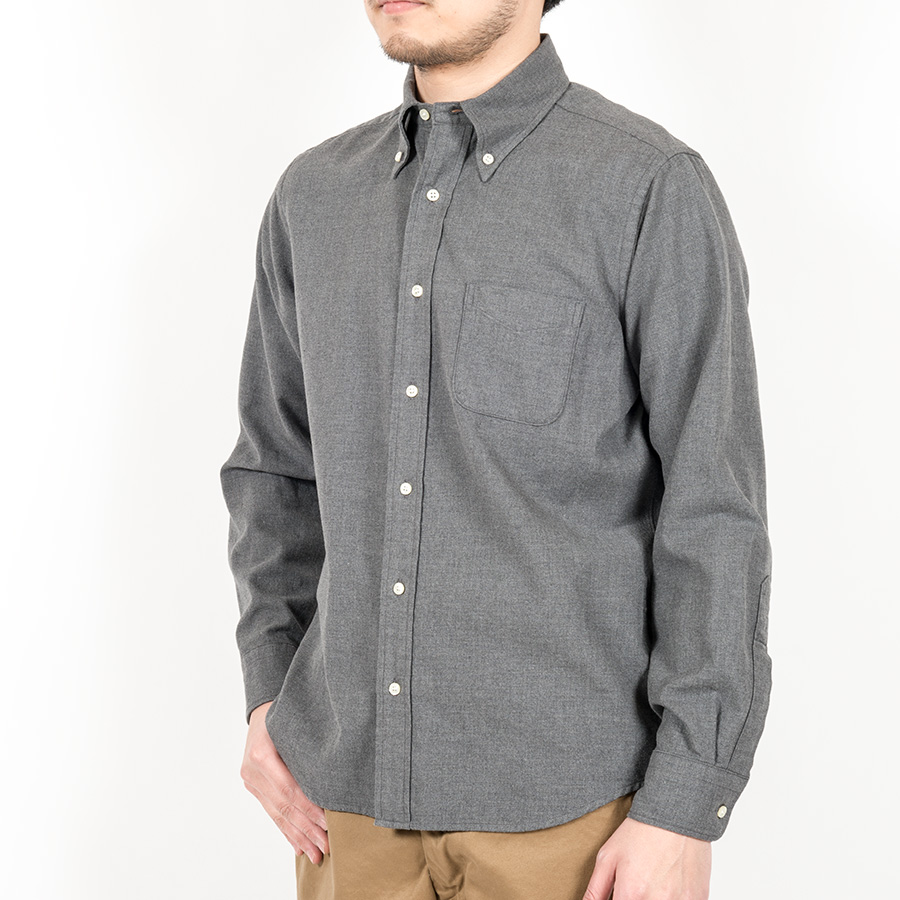綾の方が生地にくたりがある。もちろん、糸の太さも関係してきて、このシャツの場合40 番双糸(20 番程度)。いわゆる5-6 オンスクラスのシャツ生地によく使われる糸。これで平織りするとシャンブレーやオックスのようにガサっとした風合いになることが多い。綾織するからこそ独特の滑らかさ。生地をたらしたときに綺麗にドレープ(皺)が出る感じ。同じ生地で作ったワイドスプレッドを冬に着ていましたが、上に薄手〜中厚のセーターを着て室内ではちょうど良い程度。外に出るときはジャケット・コートを着るという感じです。 毎日のように着るシャツ。ぜひ、季節に合わせた素材を。