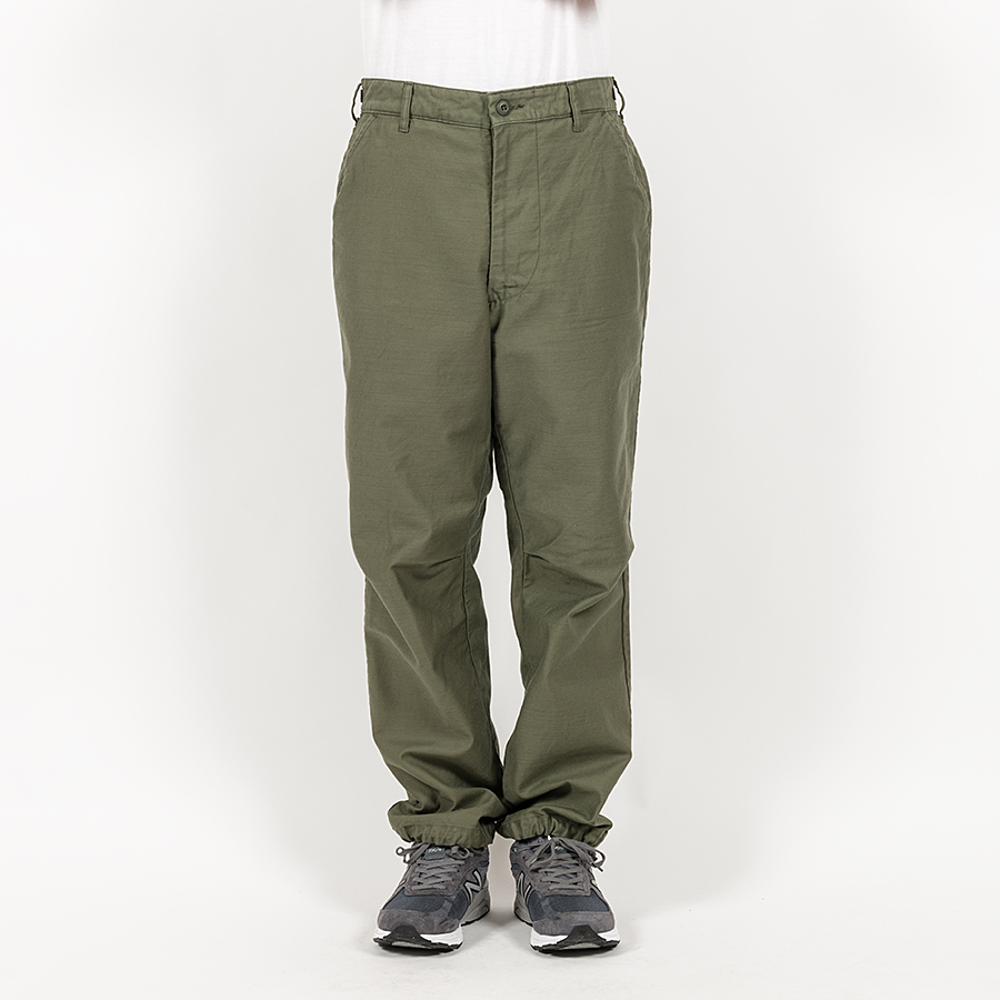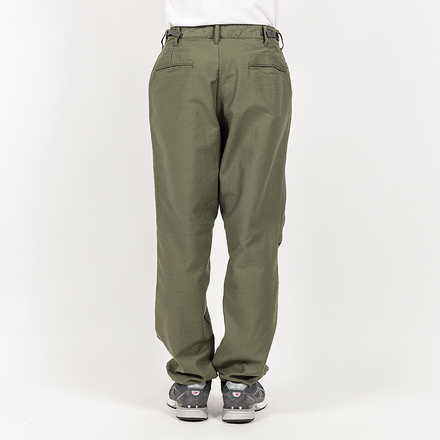 軍パン、Fatigue Pants からカーゴポケットを取り去った。Fatigue Without Pockets Trousers、通称FWP Trousers。